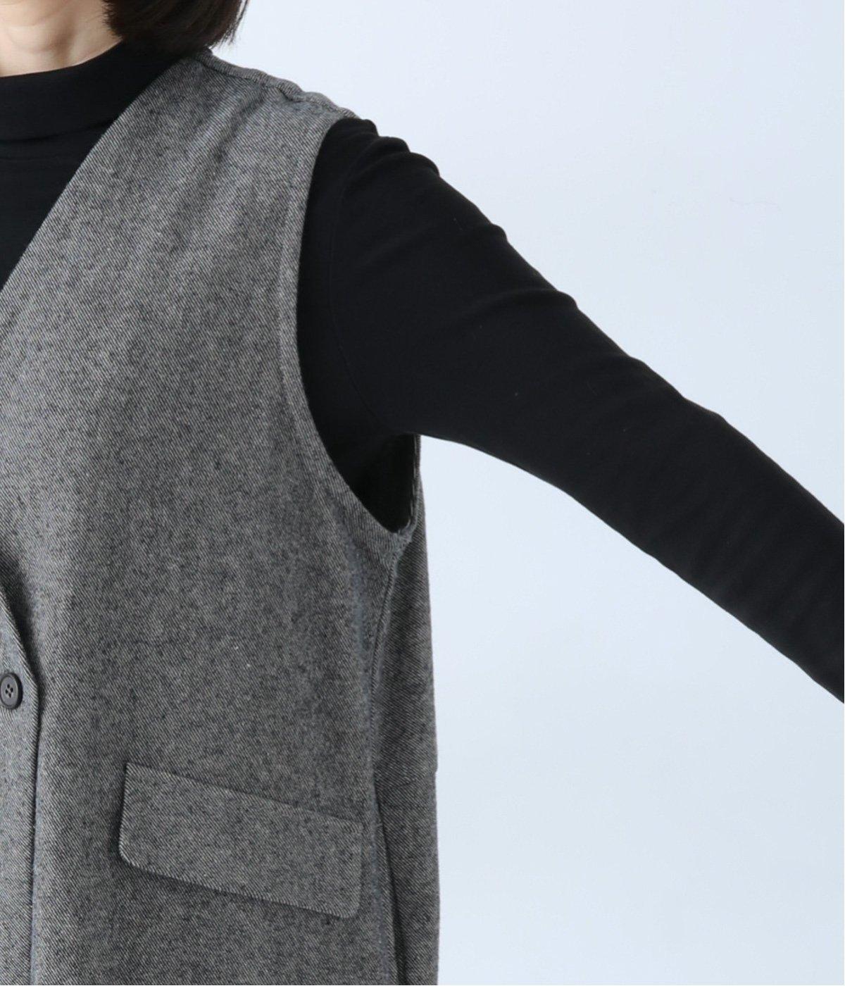 厚手のニットも重ね着しやすい深めのVネックと、大きめのアームホール。