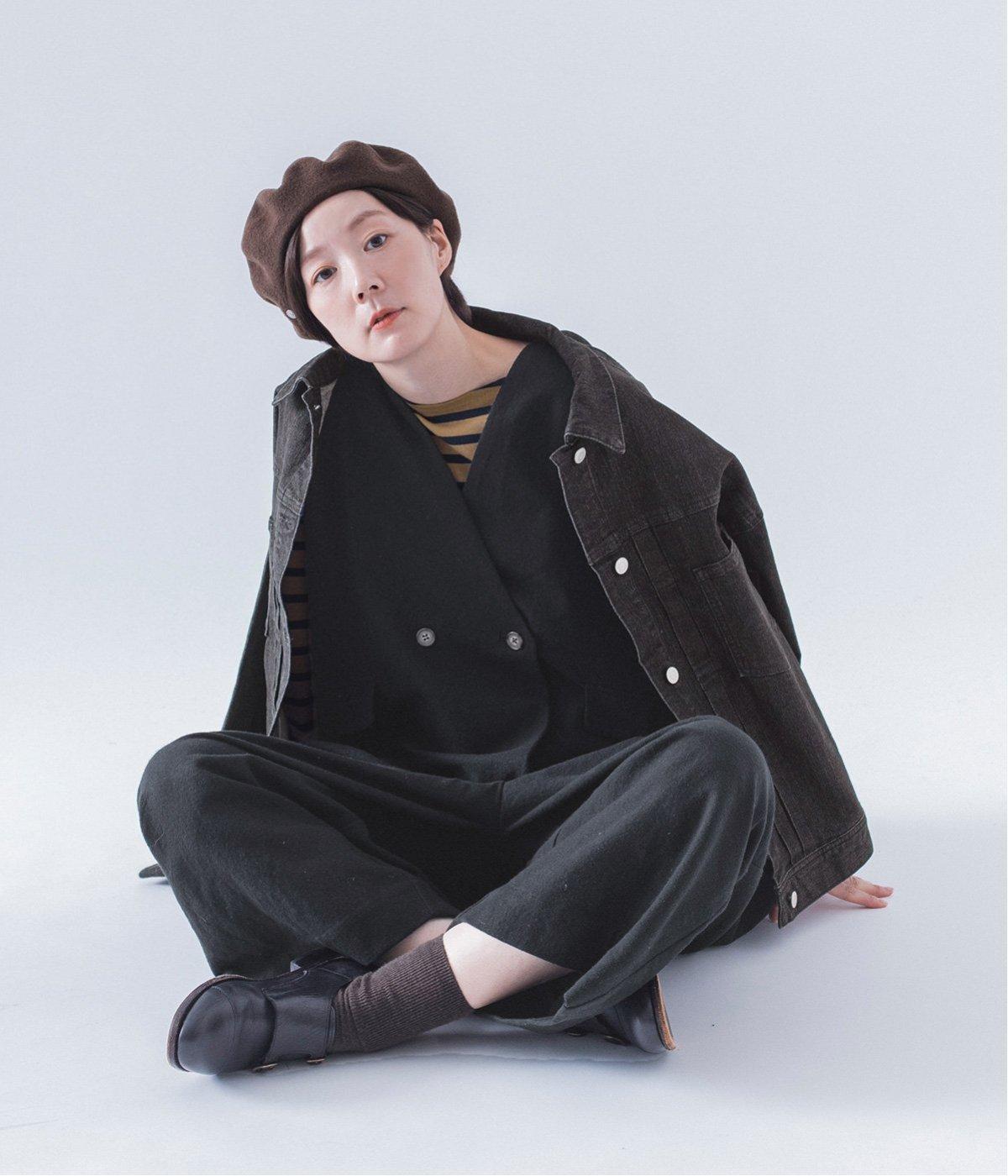 重くなりがちなイメージのブラックですが、やわらかな起毛素材で温もりのある印象に。