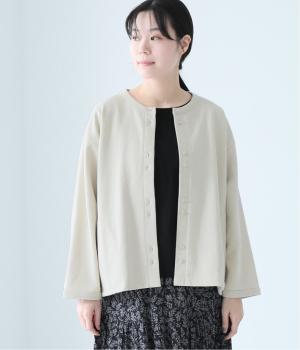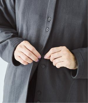 表情を添える、ほんのりとマーブル模様が入った小ぶりのボタン。後ろ裾に入れたダーツが立体感を生み、丸みある女性らしいシルエットを描きます。