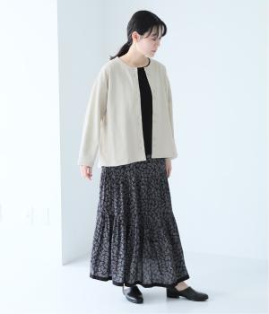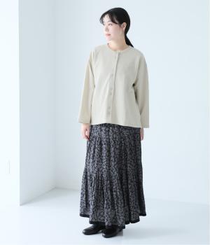 くったりとした落ち感のあるコットンレーヨン生地でつくった、ボタニカルプリントのロングスカート。切り替えとギャザーを入れたティアードデザインで、スマートで大人っぽい仕上がりに。