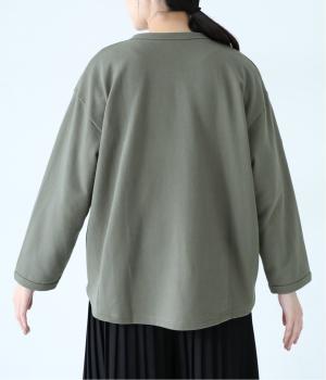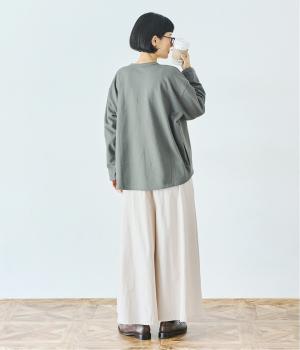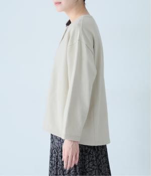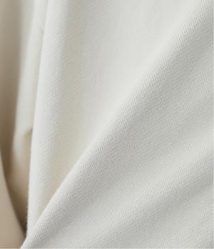 毛羽立ちにくく、なめらかな仕上がりを叶えるコットンコーマ糸を使用。斜めに走る織りの表情がやさしく、カジュアルすぎないきれいめな印象に。裏毛素材に馴染みのない方にも取り入れやすく、丈夫でお洗濯にも強いのがうれしいポイントです。