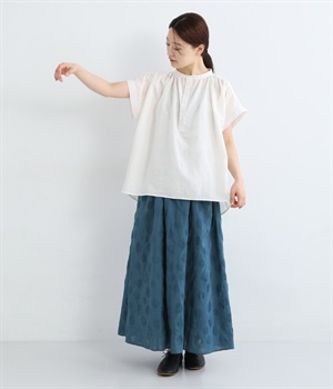 きれいに広がるロング丈の華やかなフレアシルエットで、いつものコーディネートをブラッシュアップ。幅を広めに取ったギャザーゴムウエストはフィット感抜群です。細かな微調節が可能なドロストコードつき。