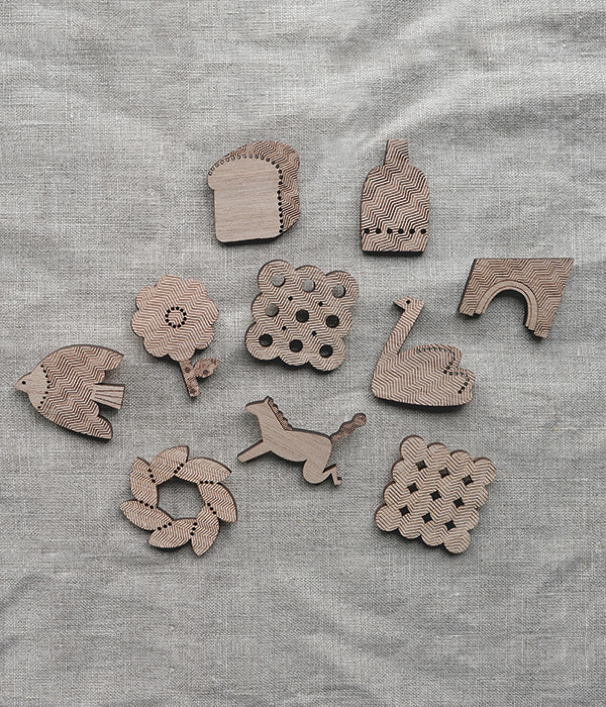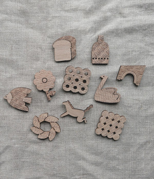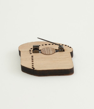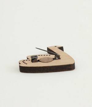 「私のための美術館」をコンセプトにしたウッドブローチです。古代ヨーロッパの文化や生活様式を「日常につける美術館」としてブローチにしました。国産のクルミ材にレザーカットで繊細な模様を施し、柿渋という天然の塗料を使った、一つひとつが手作業の丁寧な仕上がりです。個性豊かなモチーフでも自然とコーディネートになじむのは、ぬくもりのある天然素材ならでは。洋服はもちろん、バッグやストールなどを飾っても素敵です。