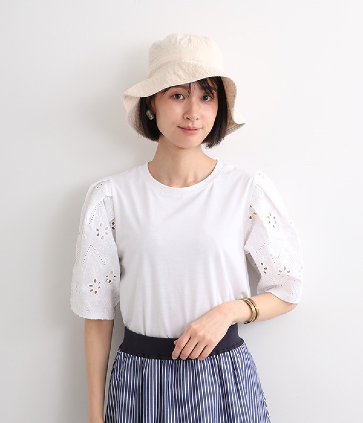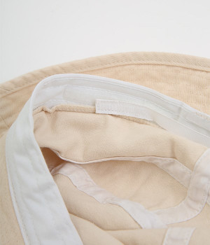 逆さにするとバケツのようなフォルムをしているのが特徴で、きれいめにもカジュアルにも合わせられるデザインに仕上がったハットです。お出掛け時の紫外線対策としてもおすすめで、コットン素材で肌ざわりも抜群。フィット感の調整もできるあごストラップは、取り外しも可能です。内側にはサイズ調整できるマジックテープ付き。