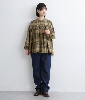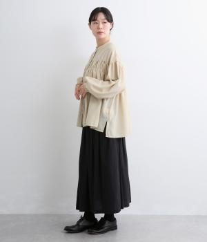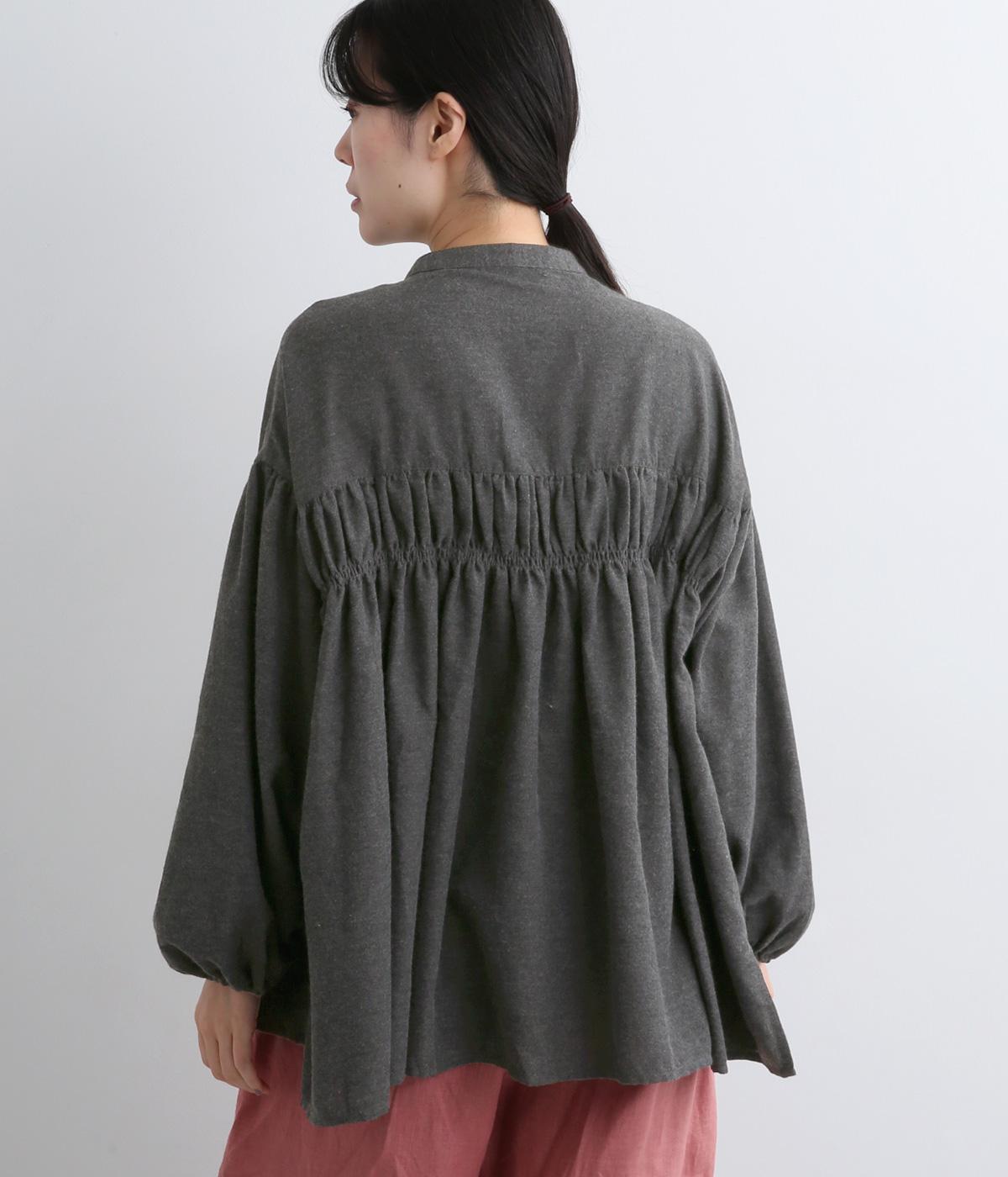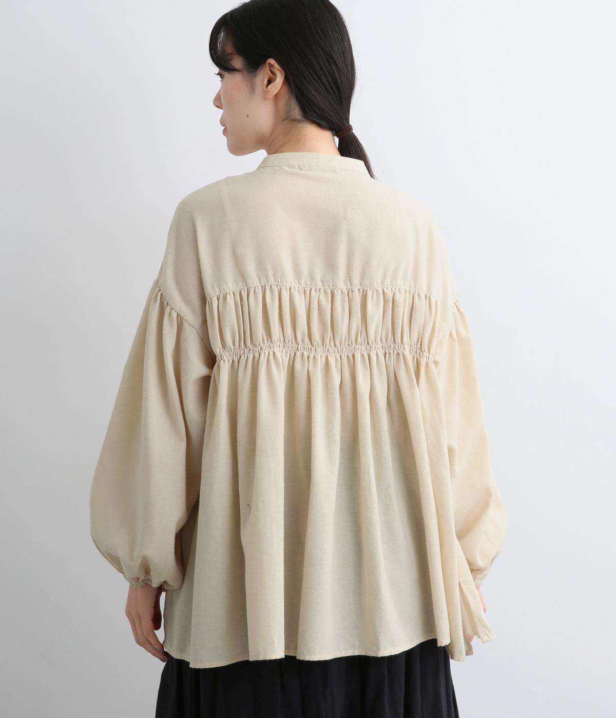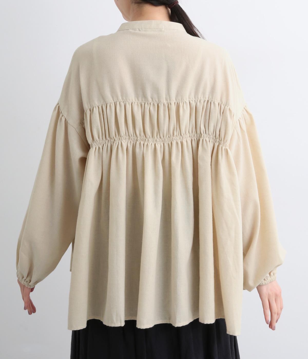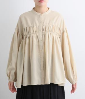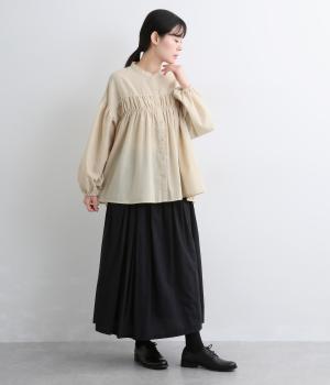 シャーリングからふわりと広がるシルエットが美しいドレープを描くブラウス。一枚で着るだけでスタイリングに華やかさをプラスします。きれいめなスカートスタイルにはもちろん、カジュアルアイテムとも好相性です。
