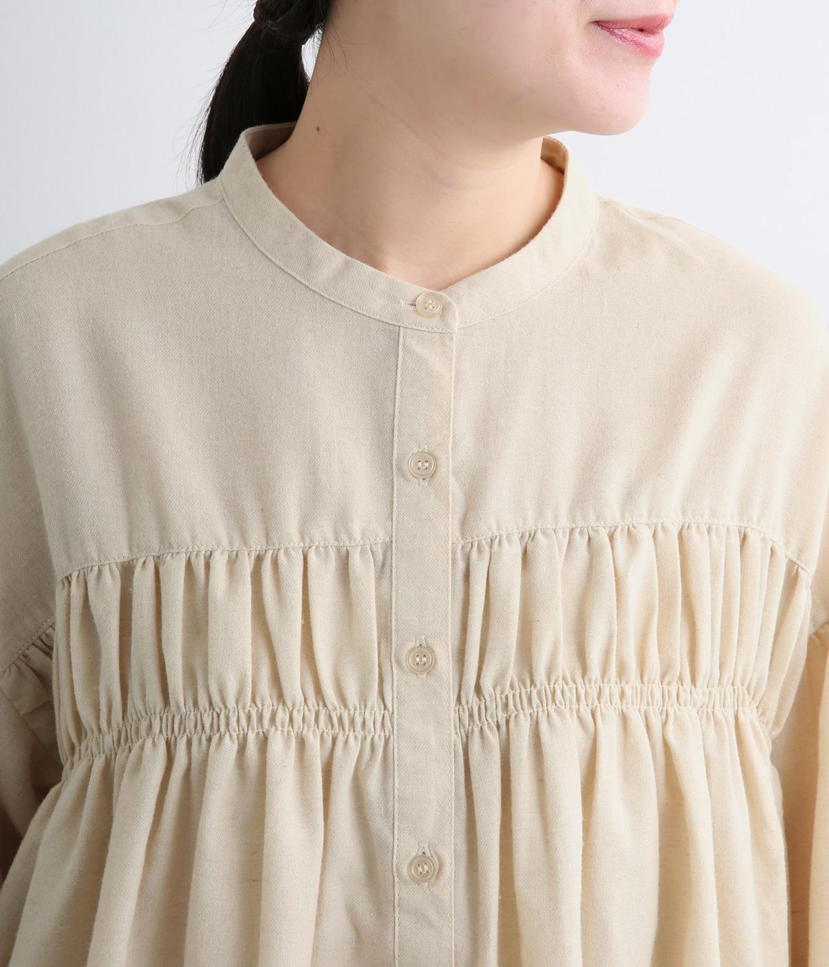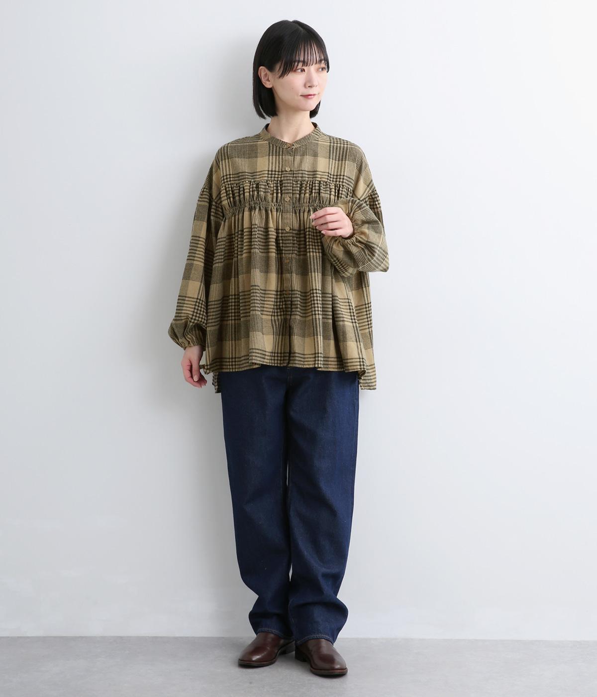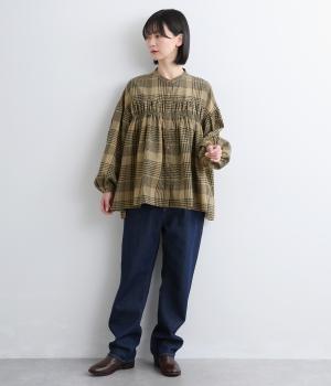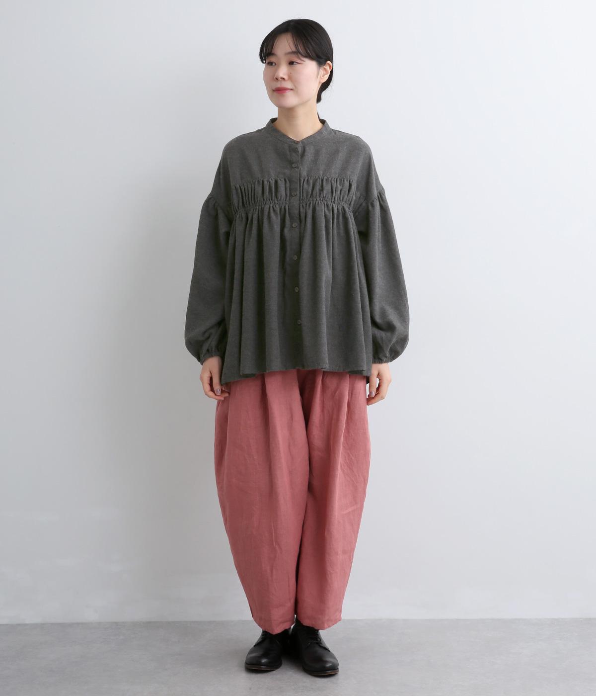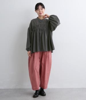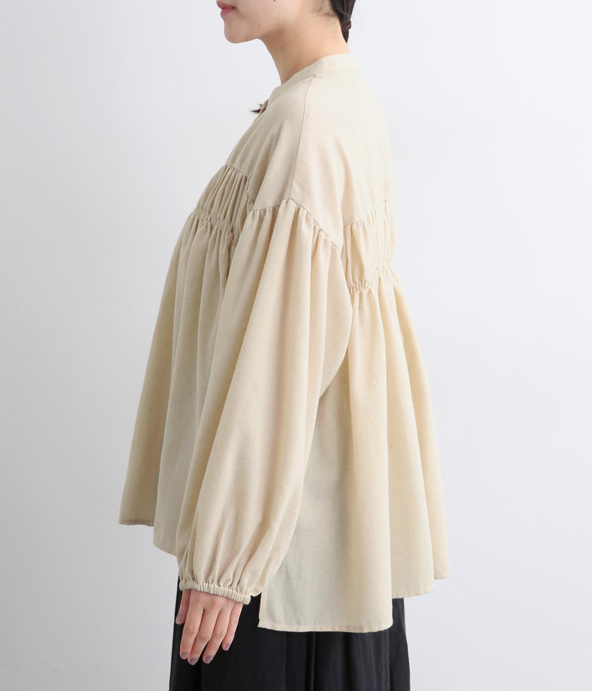 シャーリングからふわりと広がるシルエットが美しいドレープを描くブラウス。一枚で着るだけでスタイリングに華やかさをプラスします。きれいめなスカートスタイルにはもちろん、カジュアルアイテムとも好相性です。