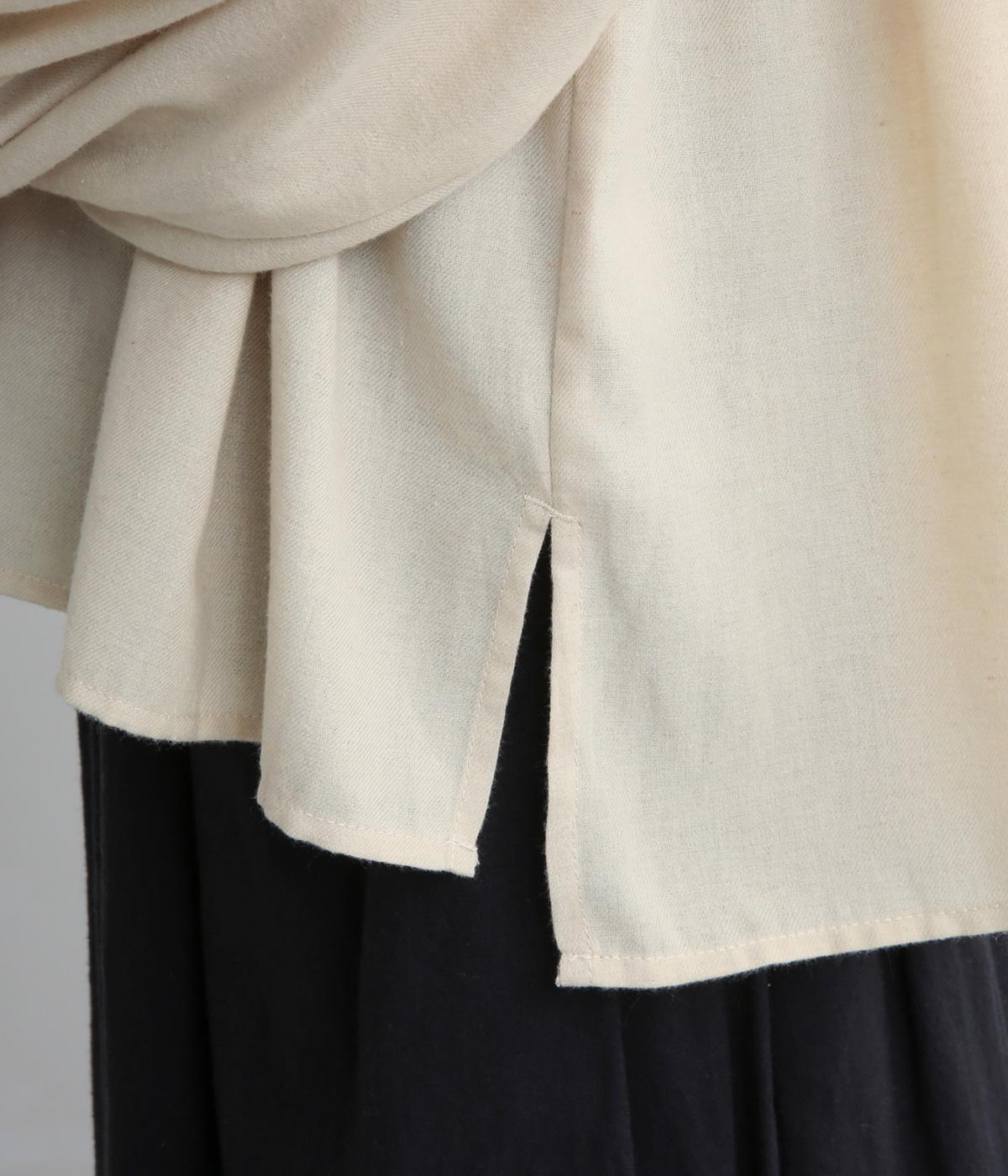 ネップやほのかな起毛がある素朴で優しい表情のポリエステルとコットンの混紡生地です。あたたかみのある雰囲気で、心地いい手ざわりの素材感です。