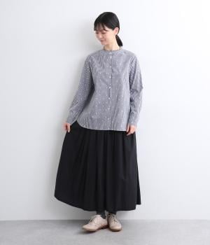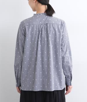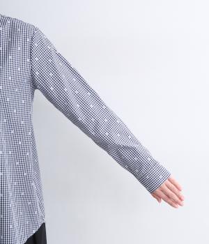さらりとした肌触りに適度なハリ感とふくらみが心地よいコットン生地を使用しています。モノトーンはギンガムチェック柄、ネイビーはギンガムチェックに花柄をちりばめています。