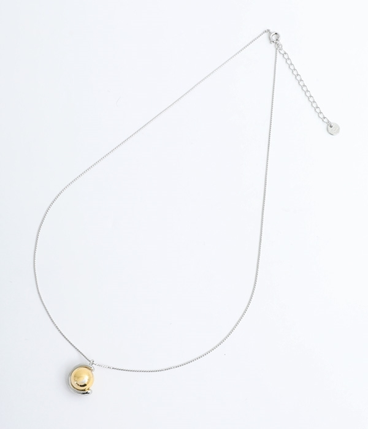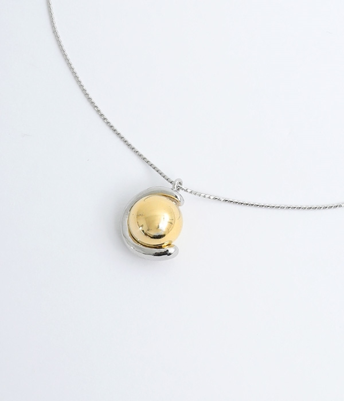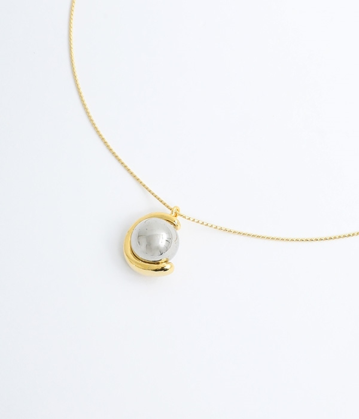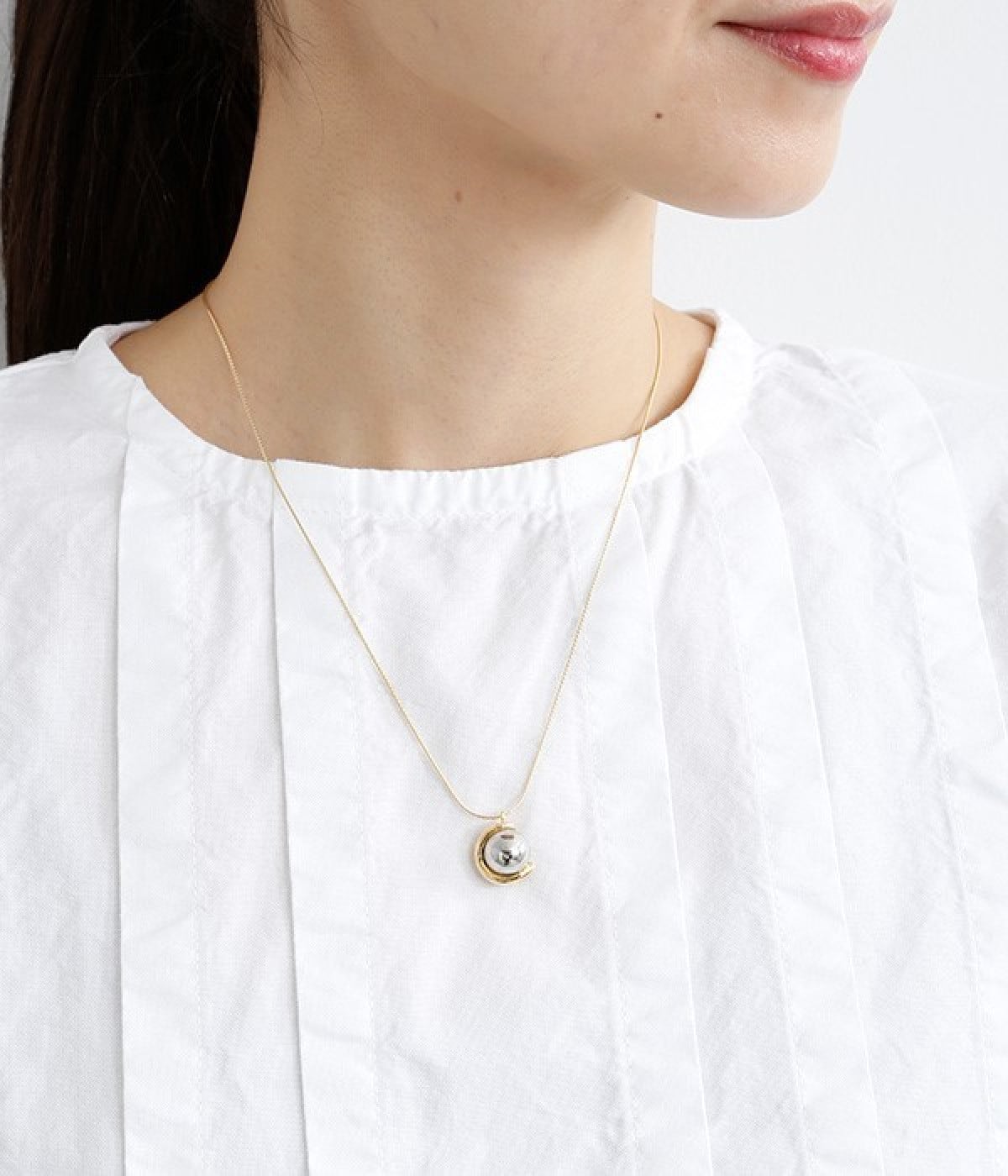 ころんとした丸いフォルムとニュアンスのあるメタルを組み合わせた、ブランドオリジナルモチーフのネックレスです。つややかなメタルがコーディネートのアクセントに。小ぶりなモチーフのためカジュアルスタイルには単体で、特別な日にはチェーンネックレスなどを重ねづけして豪華にと、シーンに合わせてアレンジしても素敵です。