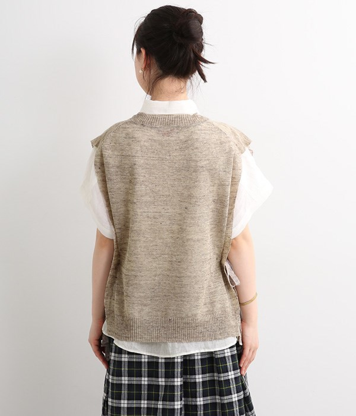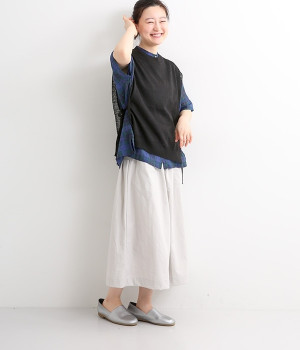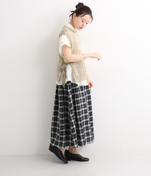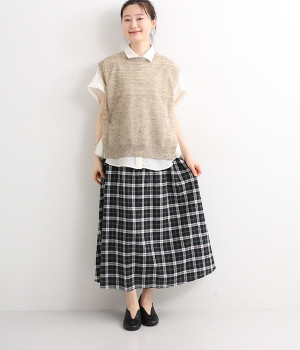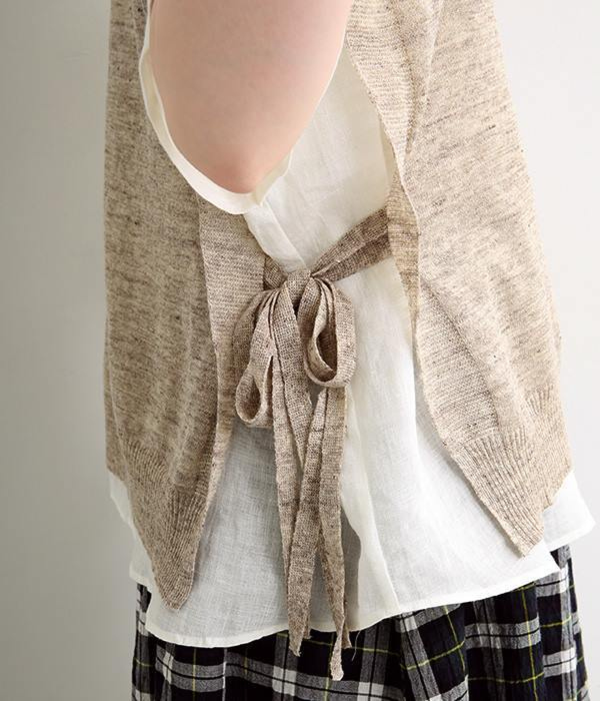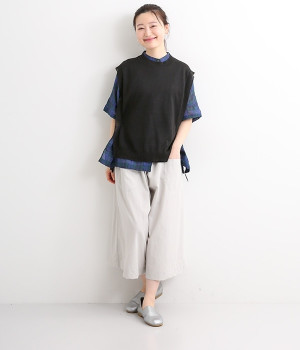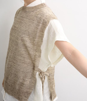 透けのあるざっくりとした編み目が涼しげな麻素材のベストです。ざっくりと開いた脇が印象的なデザイン。脇と裾の開きをリボン紐で調節可能、ゆったりしすぎないコンパクトなシルエットが魅力です。首もとはリブ状のクルーネックで窮屈さのない開き具合でストレスフリーです。Tシャツやワンピースとレイヤードすることでコーディネートの幅が広がる一枚です。