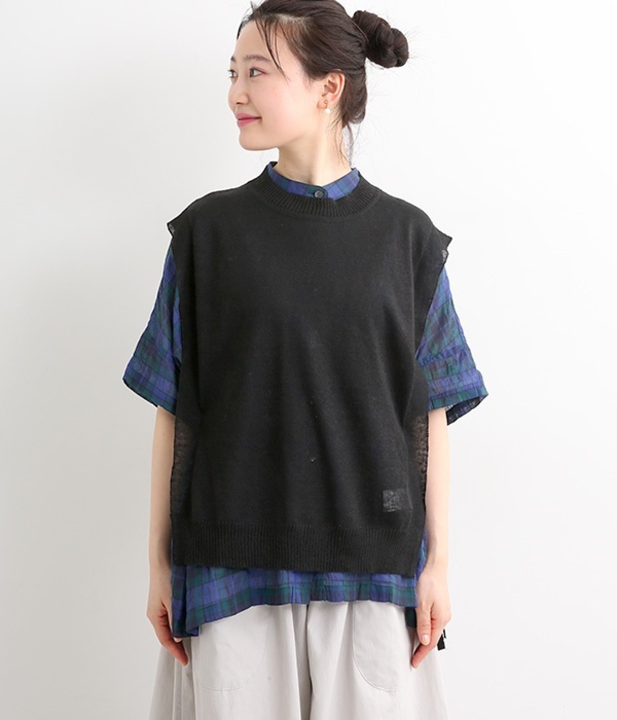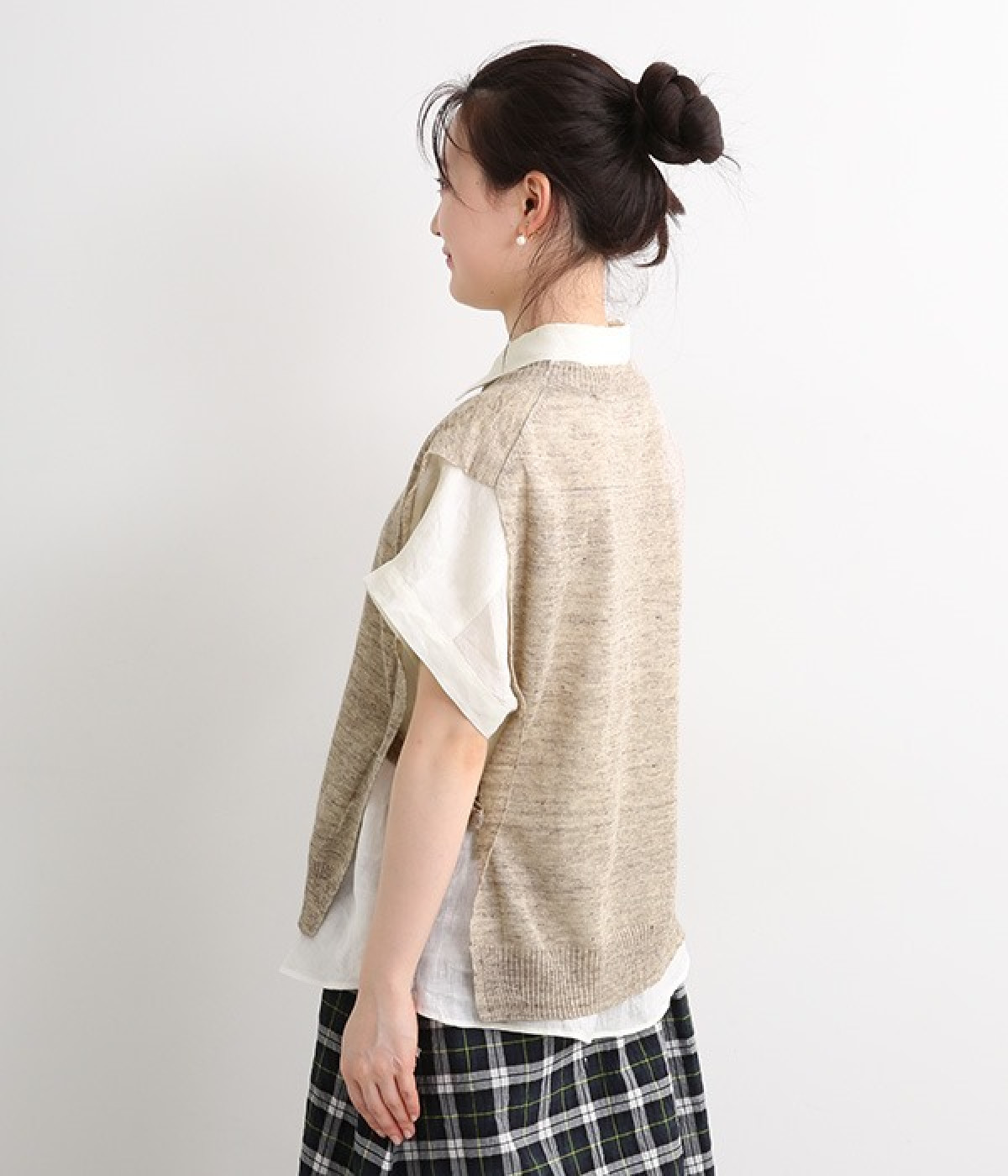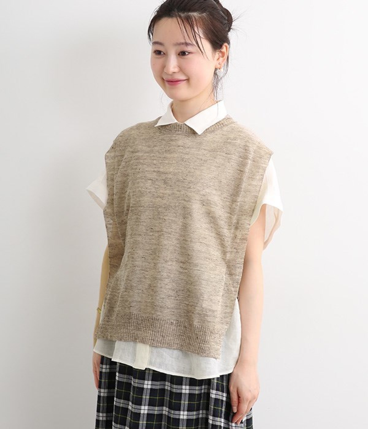 透けのあるざっくりとした編み目が涼しげな麻素材のベストです。ざっくりと開いた脇が印象的なデザイン。脇と裾の開きをリボン紐で調節可能、ゆったりしすぎないコンパクトなシルエットが魅力です。首もとはリブ状のクルーネックで窮屈さのない開き具合でストレスフリーです。Tシャツやワンピースとレイヤードすることでコーディネートの幅が広がる一枚です。