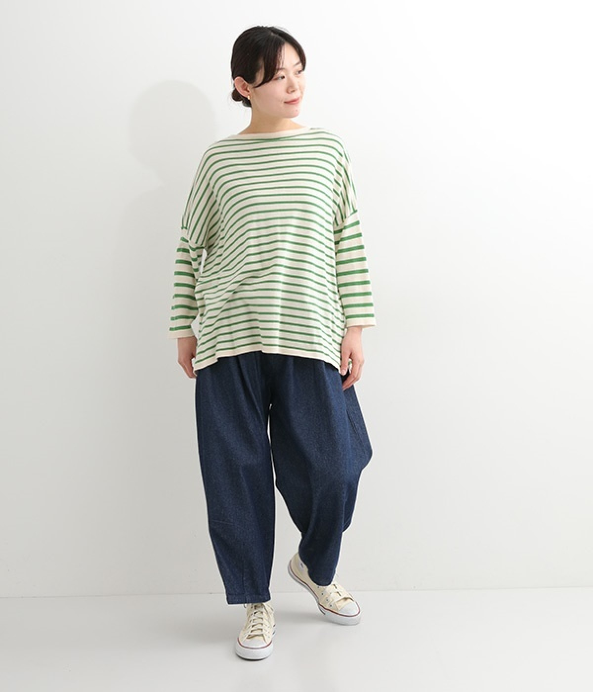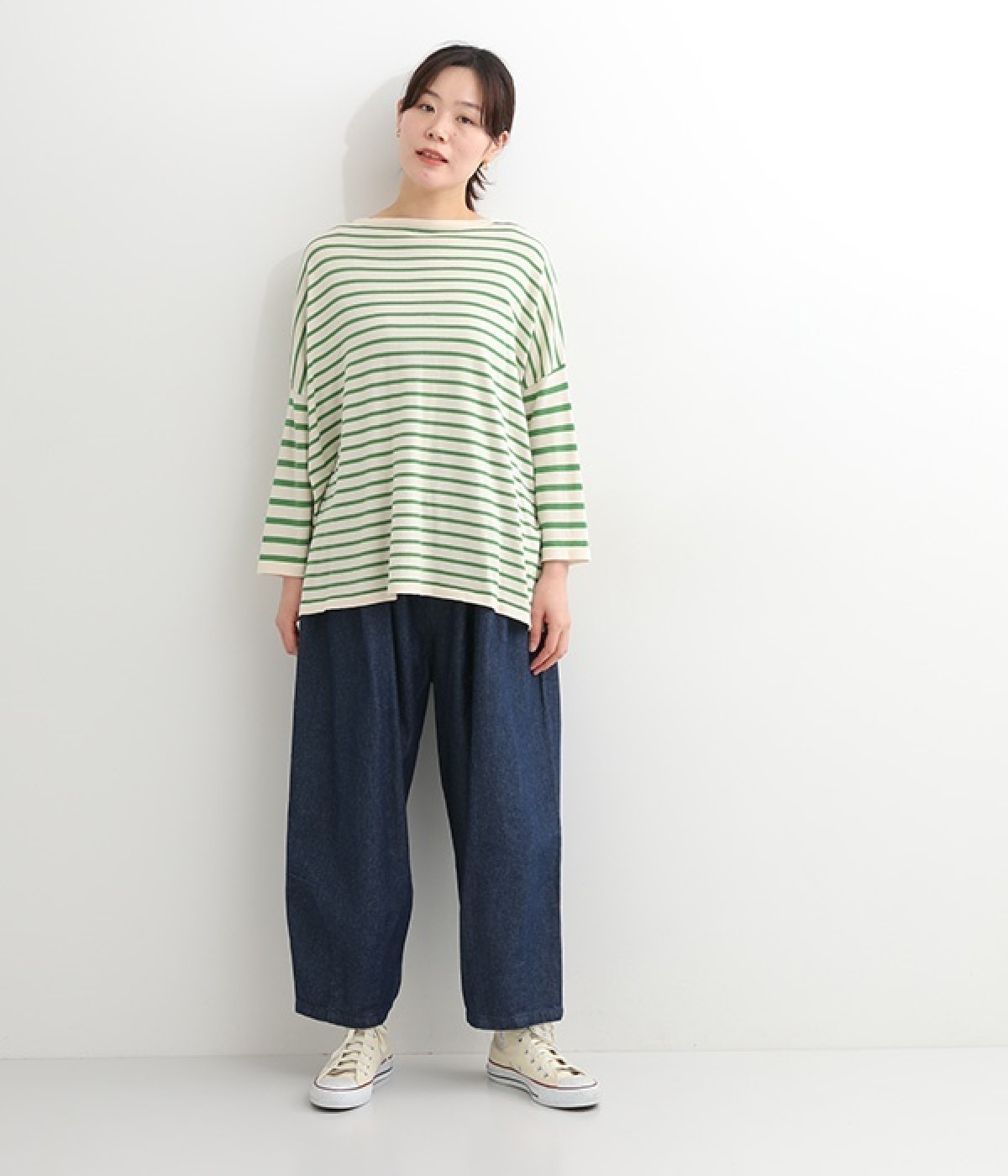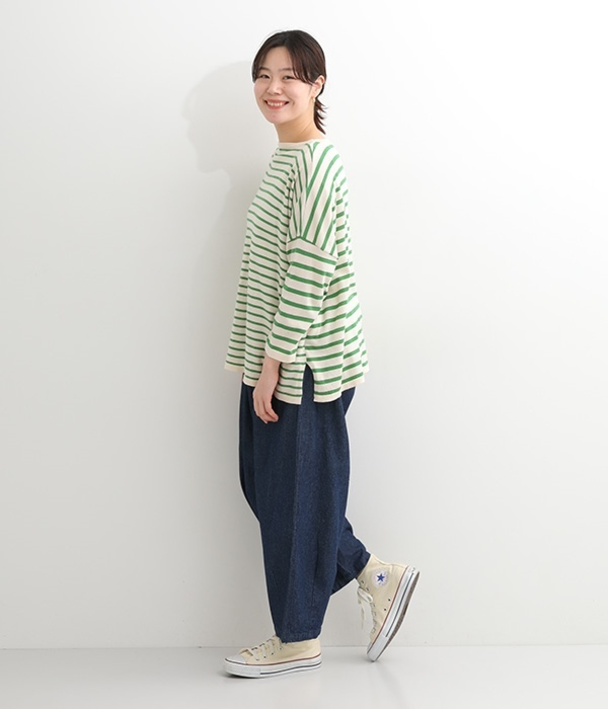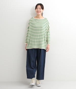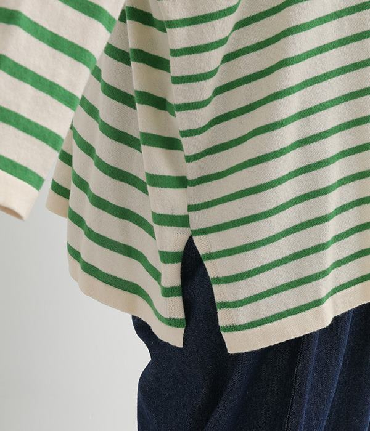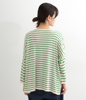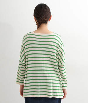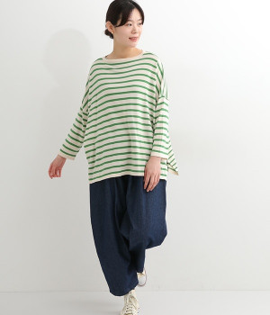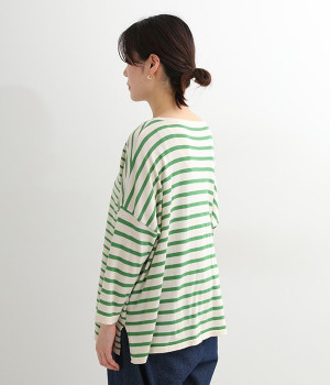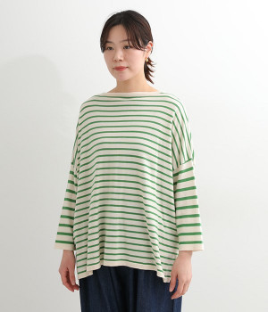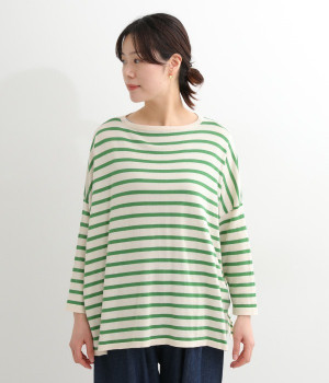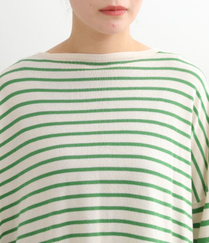 くったりと柔らかなピマコットン素材のニットプルオーバーです。ボーダーながらカジュアルになりすぎないニット生地が◎。ラウンドネックにしたりボートネックにしたり、その日のコーディネートに合わせて変えられる2WAY仕様です。裾はスリットを配し、抜け感を付けています。