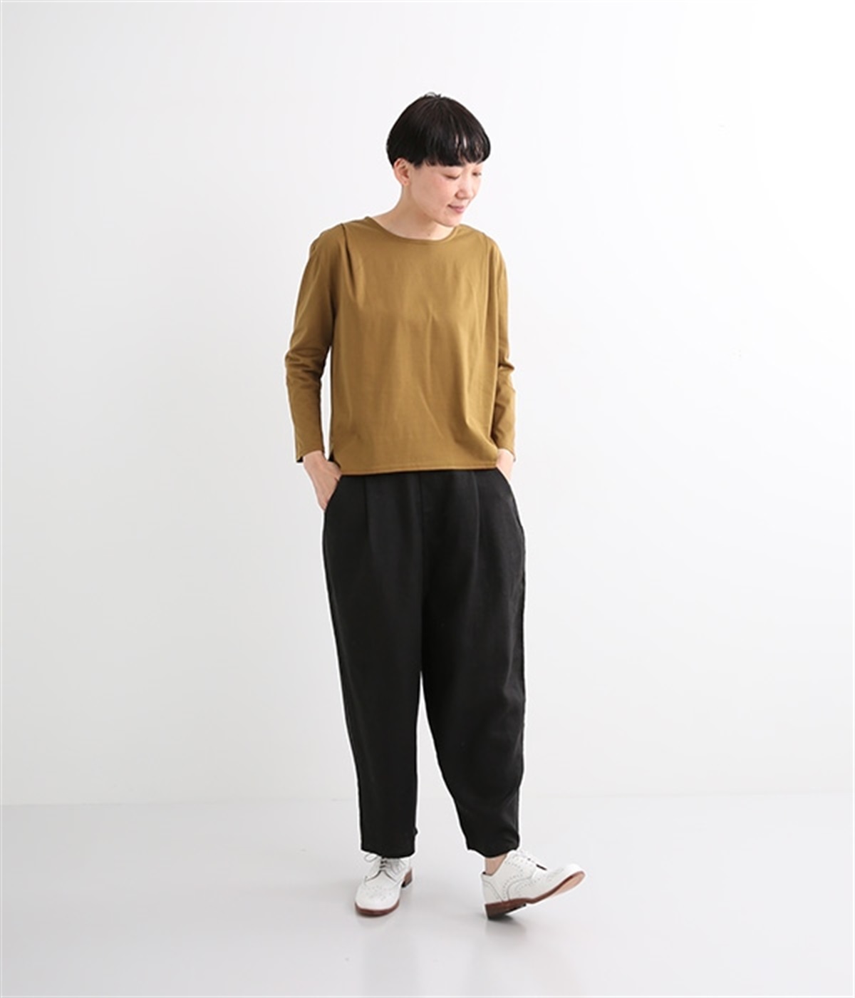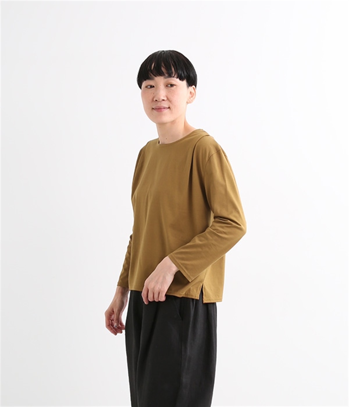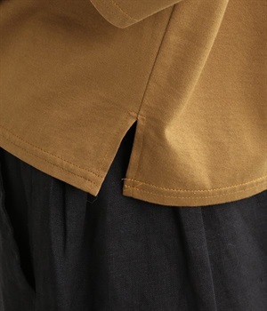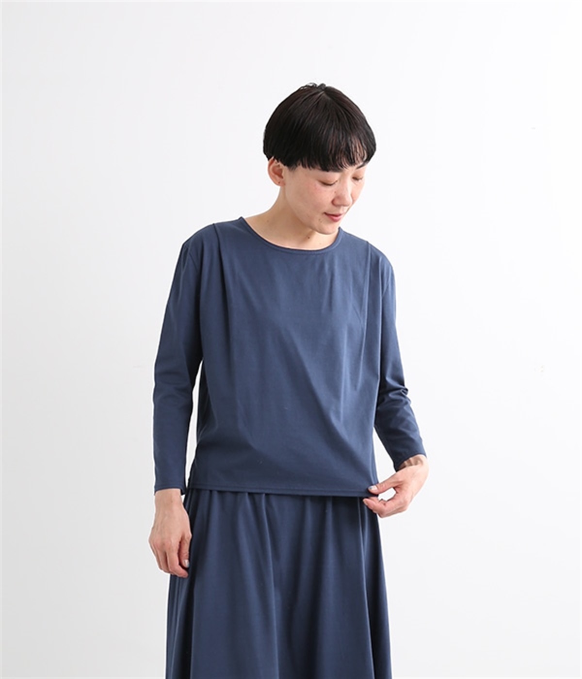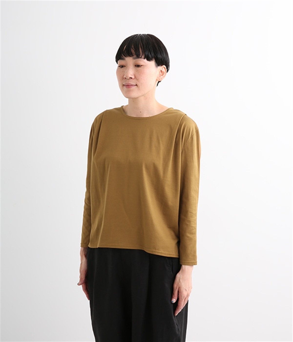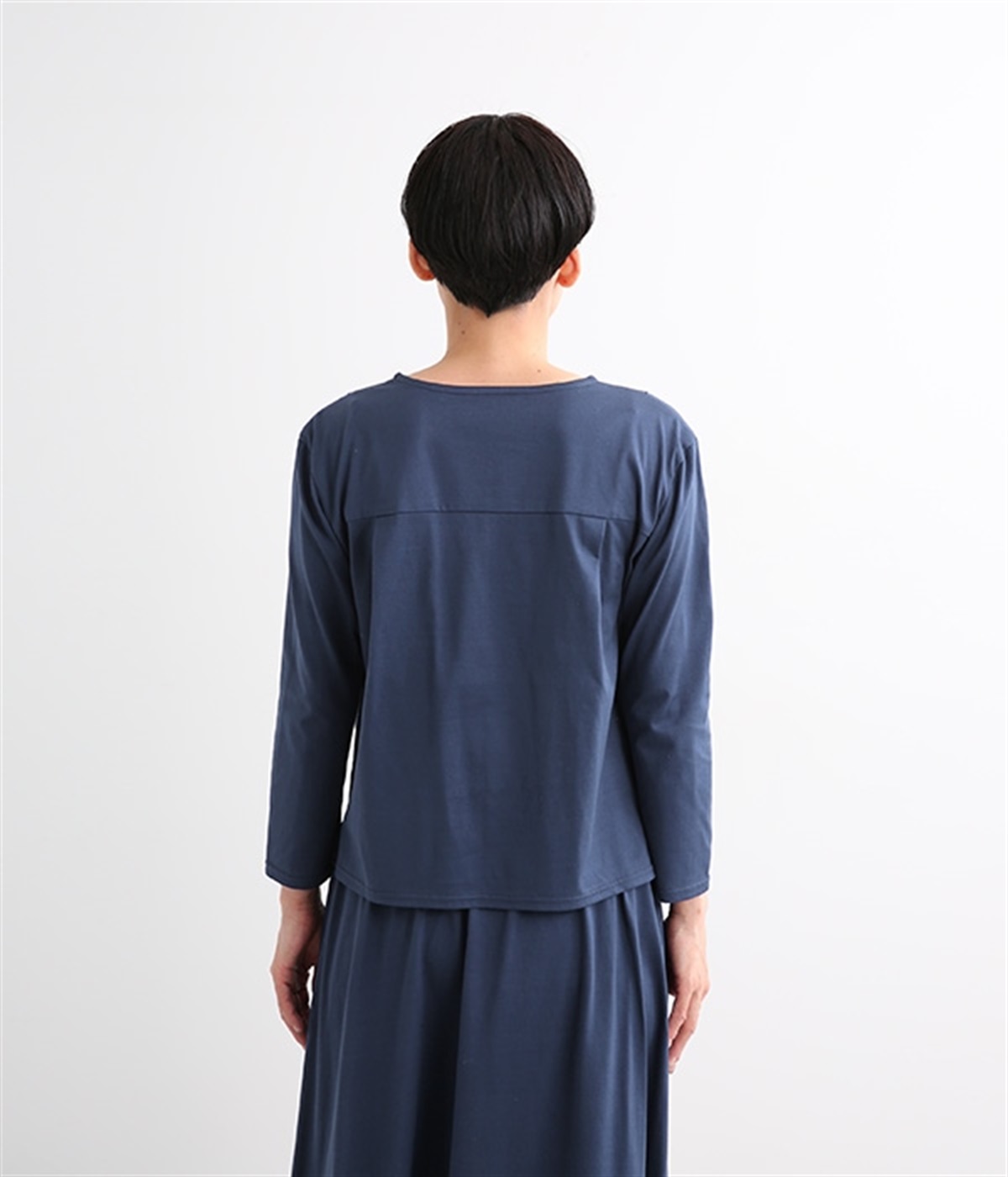 日本製のソフトなシルケット天竺で仕立てたプルオーバーです。毛羽立ちのないカットソー生地で、カジュアルになりがちなアイテムもきれいめにまとまっています。広がりをおさえた襟開きに前身頃肩の太めのタックがエレガントな要素をプラス。後ろは肩ヨークとヨーク下のタックでバックシャンなデザインも持たせています。同素材のスカートと合わせればデイリーに着まわせる大人スタイルの完成です。