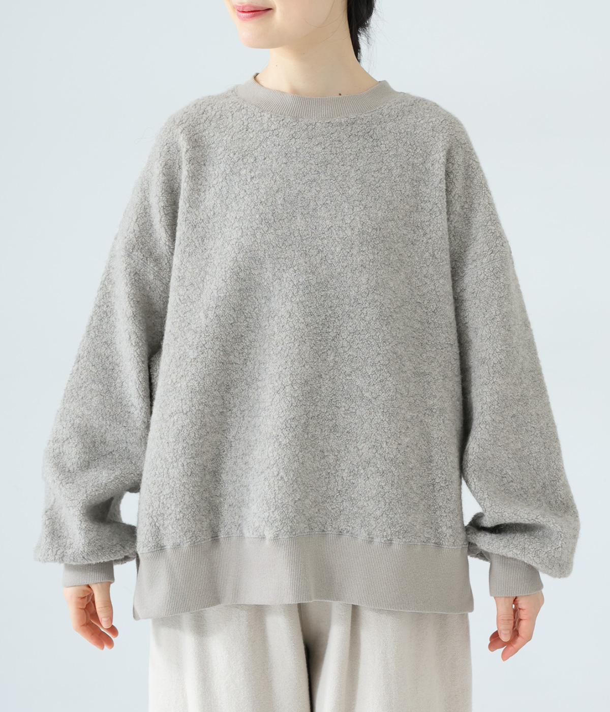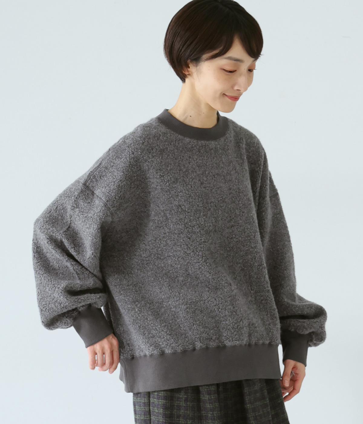 ふっくらとしたボア素材を主役にしたシンプルなプルオーバー。ゆとりのあるシルエットがこなれ感を演出します。袖口をリブできゅっと引き締めたバルーンスリーブが愛らしいポイントに。ネックや裾にも伸びのよいリブを配してカジュアルさを加えました。