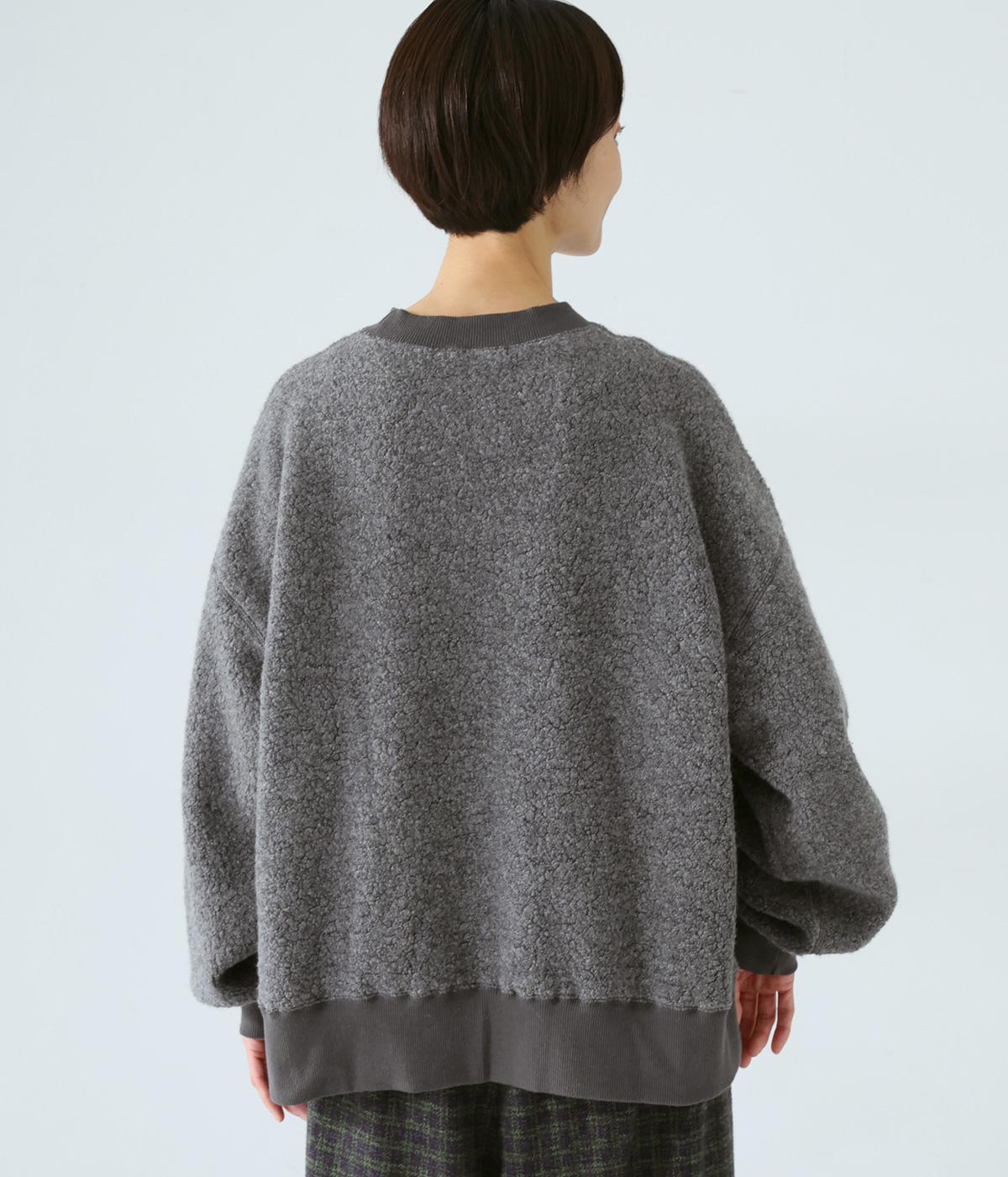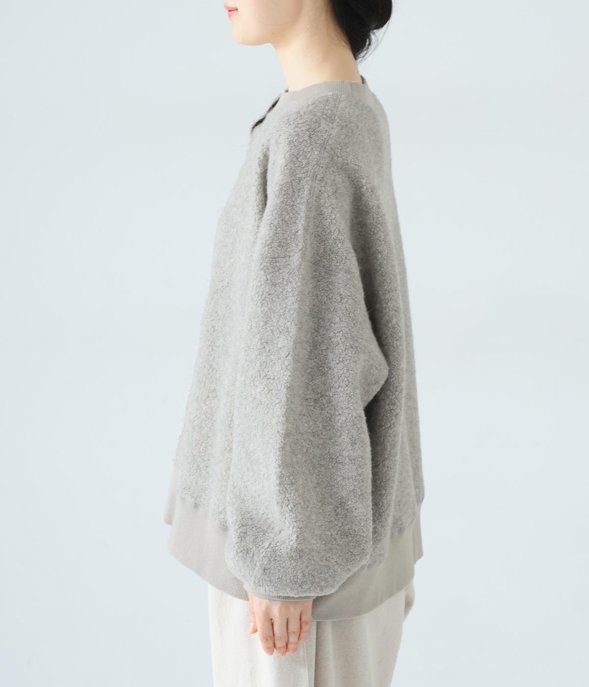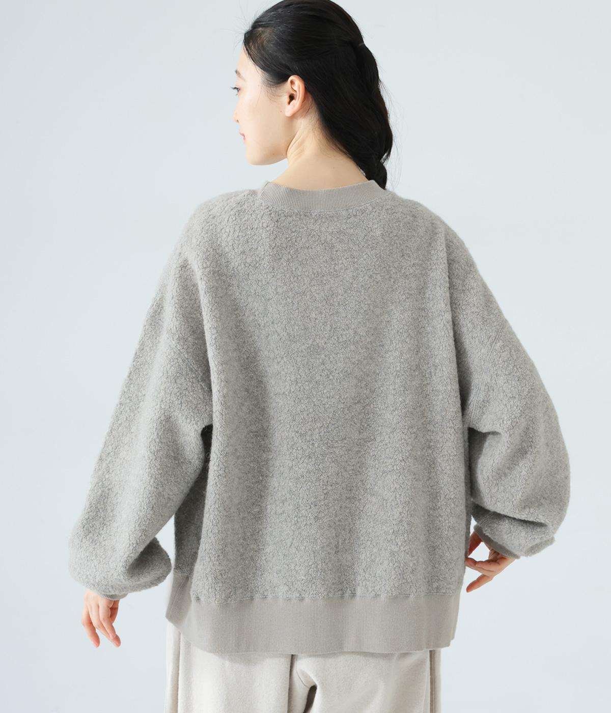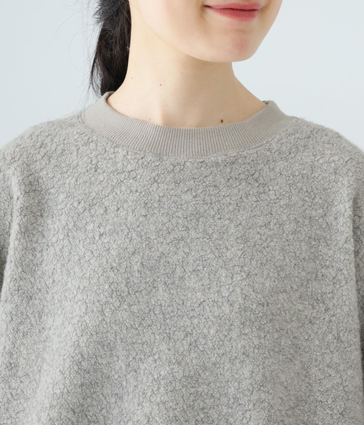 くるんとカールした毛足がかわいらしい、軽くてあたたかなウール混ボア素材を使用。ボリュームをおさえた適度な厚みで、スエットのようにデイリー使いしやすいのが◎です。