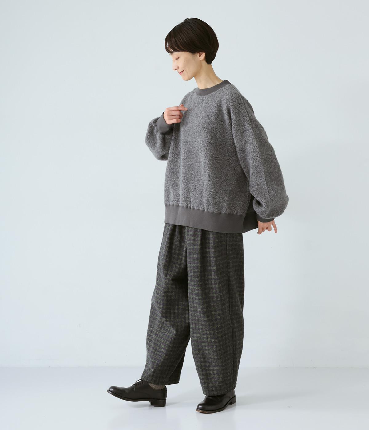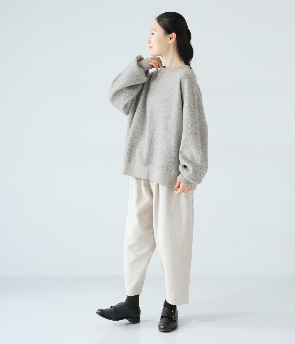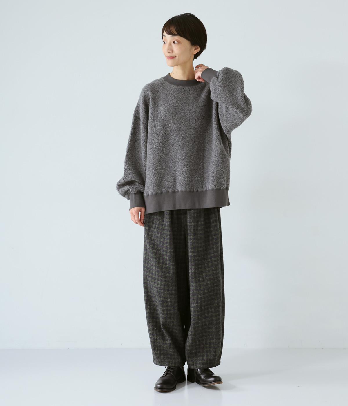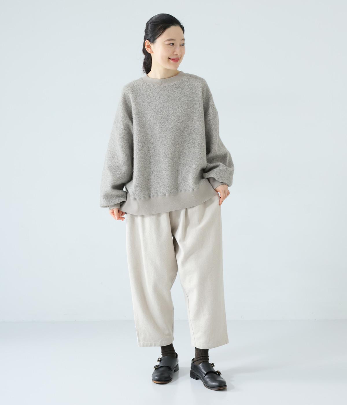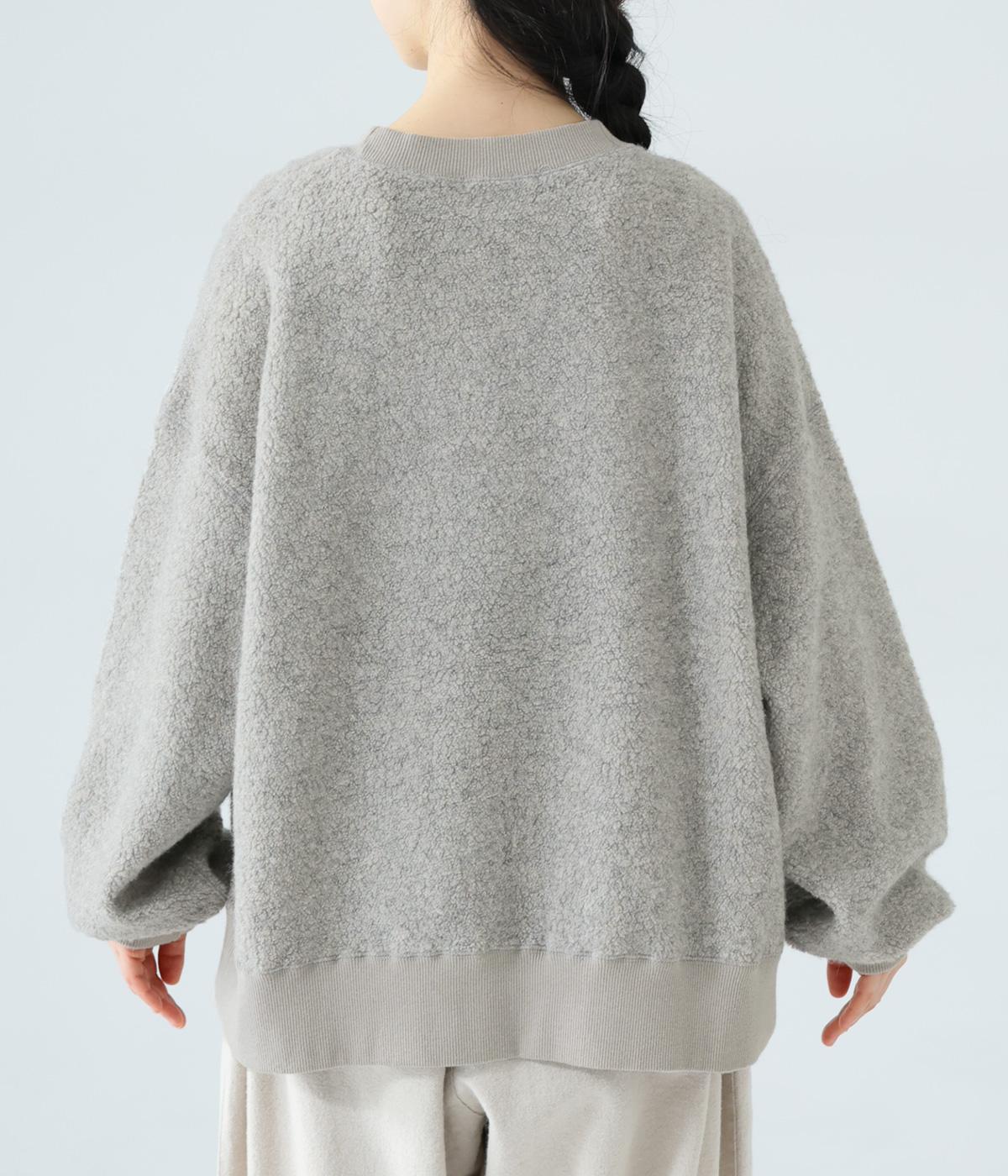 くるんとカールした毛足がかわいらしい、軽くてあたたかなウール混ボア素材を使用。ボリュームをおさえた適度な厚みで、スエットのようにデイリー使いしやすいのが◎です。