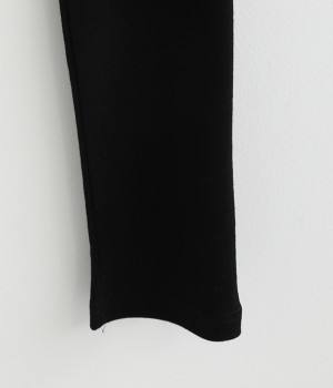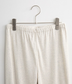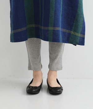 柔らかな肌触りを持ち伸縮性の高いコットンのフライス生地を使用した、オールシーズン着まわせるレギンスです。足首は締め付けがないように、少しゆとりを持たせているのがポイントに。スカートやワンピースとの重ね着スタイルにはもちろん、お家でのリラックスタイムにもぴったりな一本です。ウエストゴムでラクな穿き心地です。