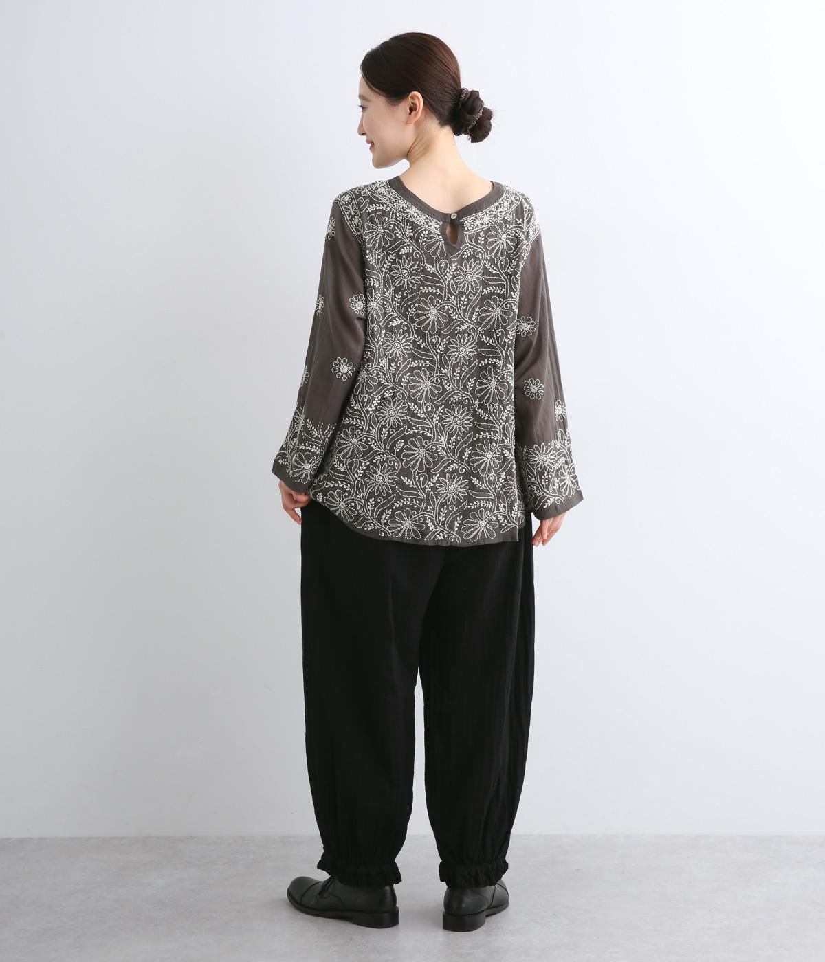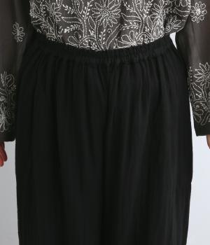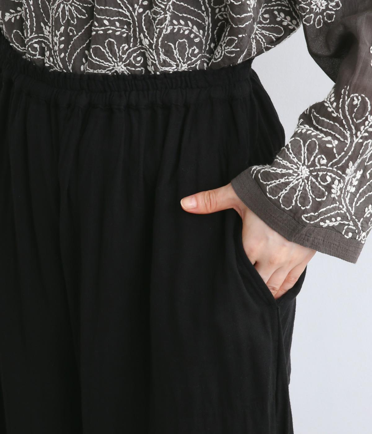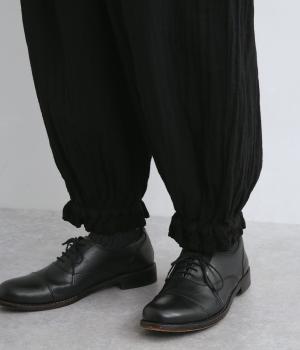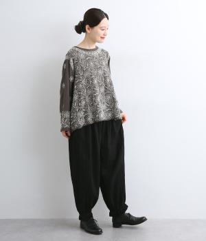 裾のレース使いが特徴的なパンツは、メリハリのあるシルエットでボリュームトップスやワンピースなどとのレイヤードにも活躍。ゴムギャザーを寄せているので裾をたくし上げて丈感のアレンジも◎。ウエストは総ゴムのイージー仕様。