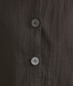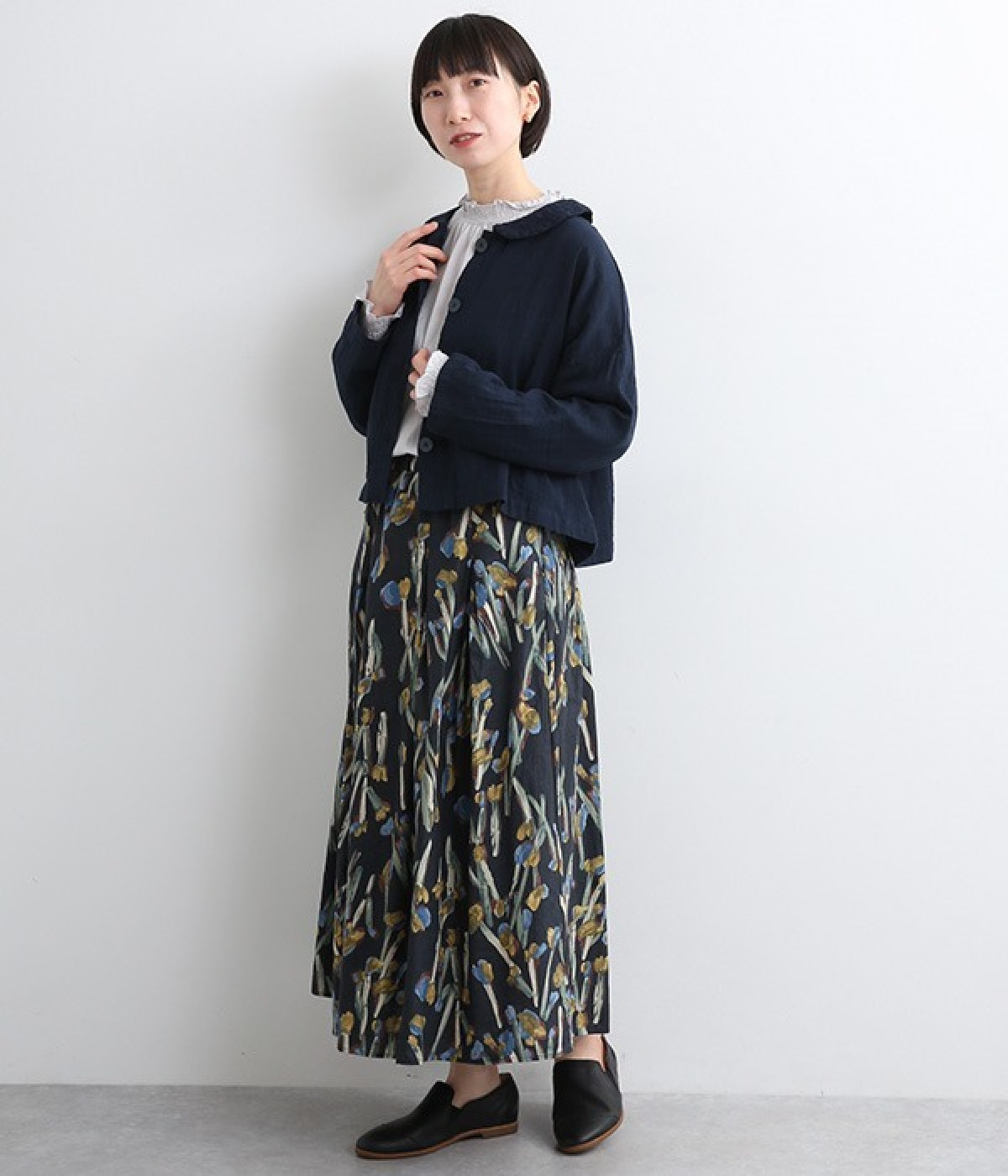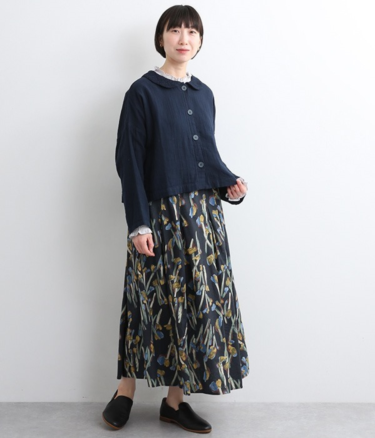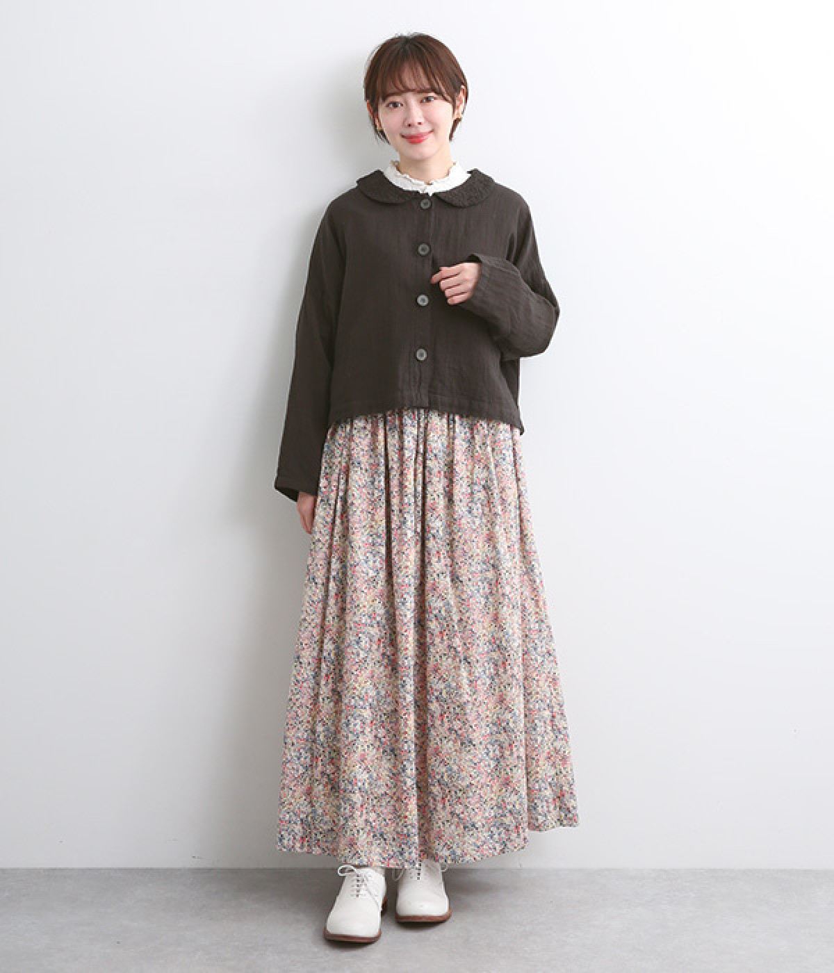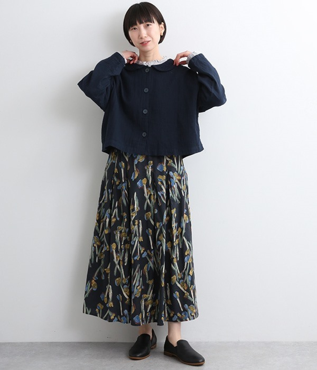 大きくあいた首元に映える刺繍入りの丸襟デザインがかわいらしいブラウス。軽くやさしい肌ざわりが心地よいコットンダブルガーゼで仕立てました。生地の表面に現れる洗いざらしのようなシワや、くったりやわらかな風合いがナチュラルな雰囲気を引き立てます。ワイドなシルエットにコンパクトなクロップド丈が絶妙なバランスを保ち、さまざまな着こなしにすっとなじみます。前を開けて羽織り感覚でスタイリングするのも素敵です。
