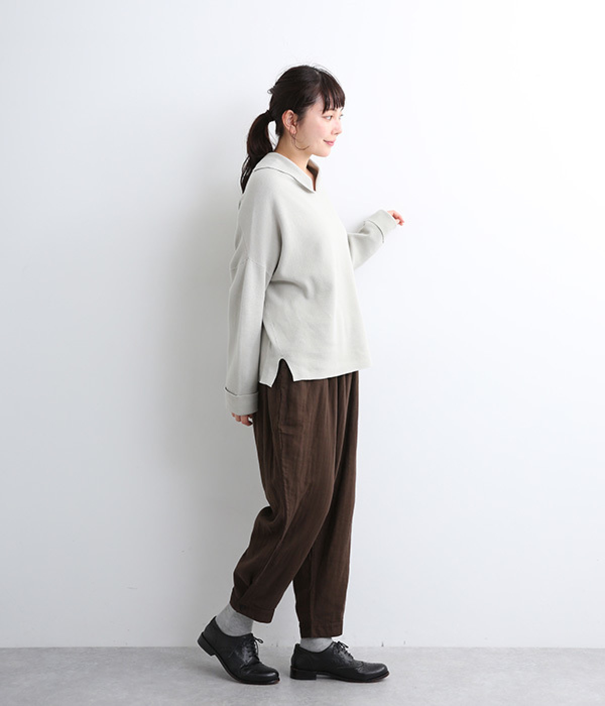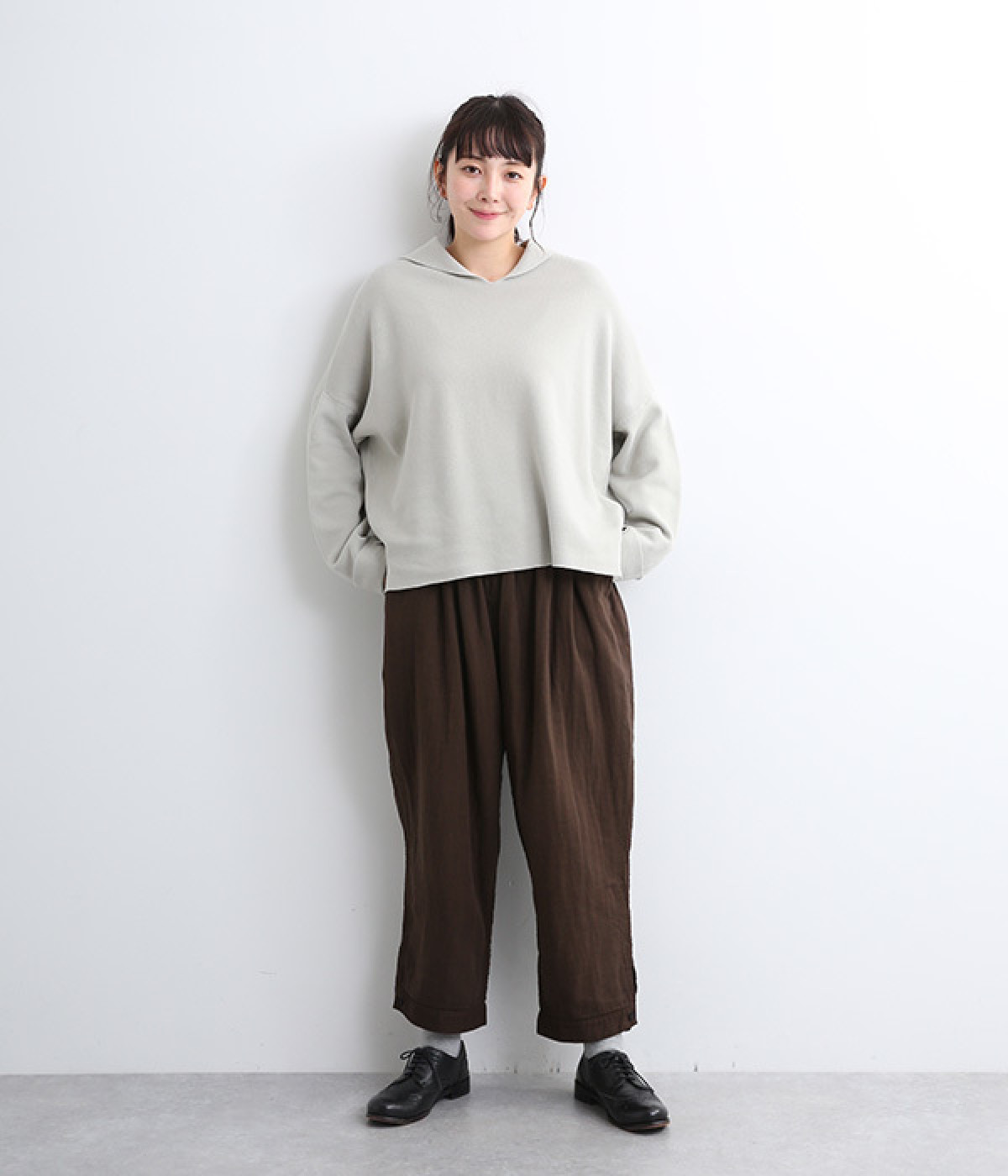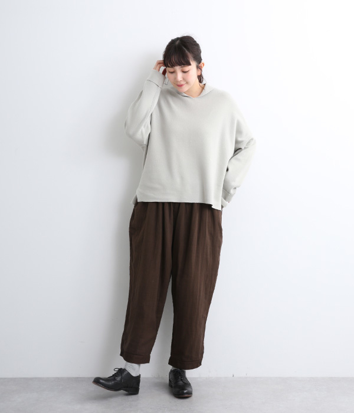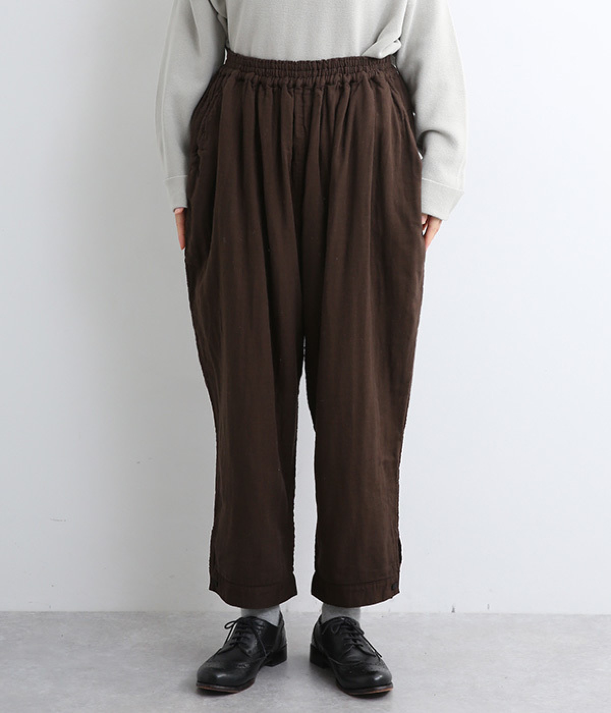 腰まわりのドレープが生むやわらかなフォルムではき心地快適に