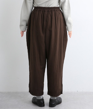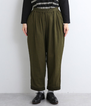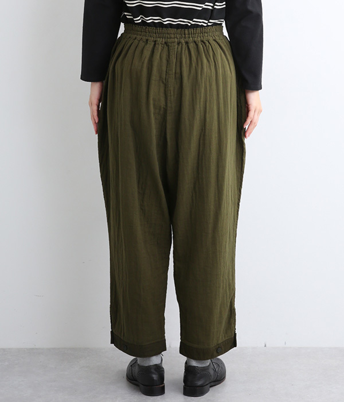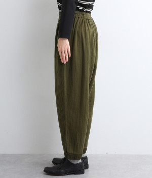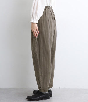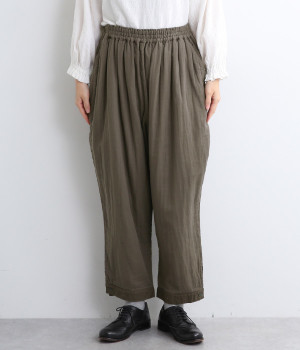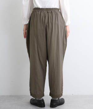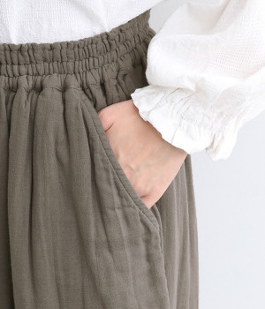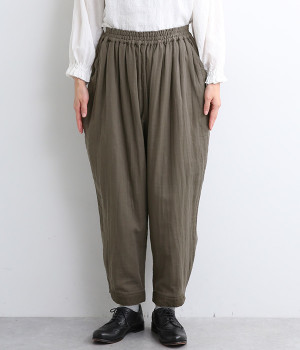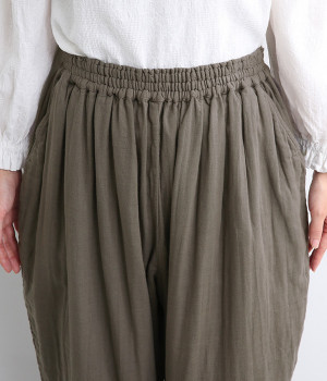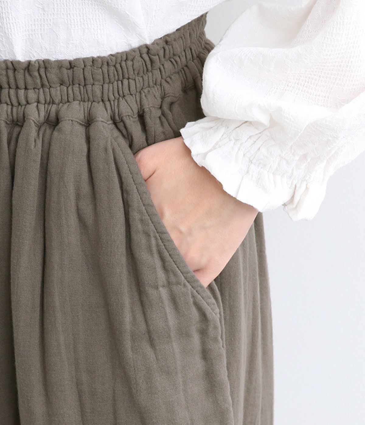 三本ステッチ入りのゴムウエストでたっぷりのギャザーを演出