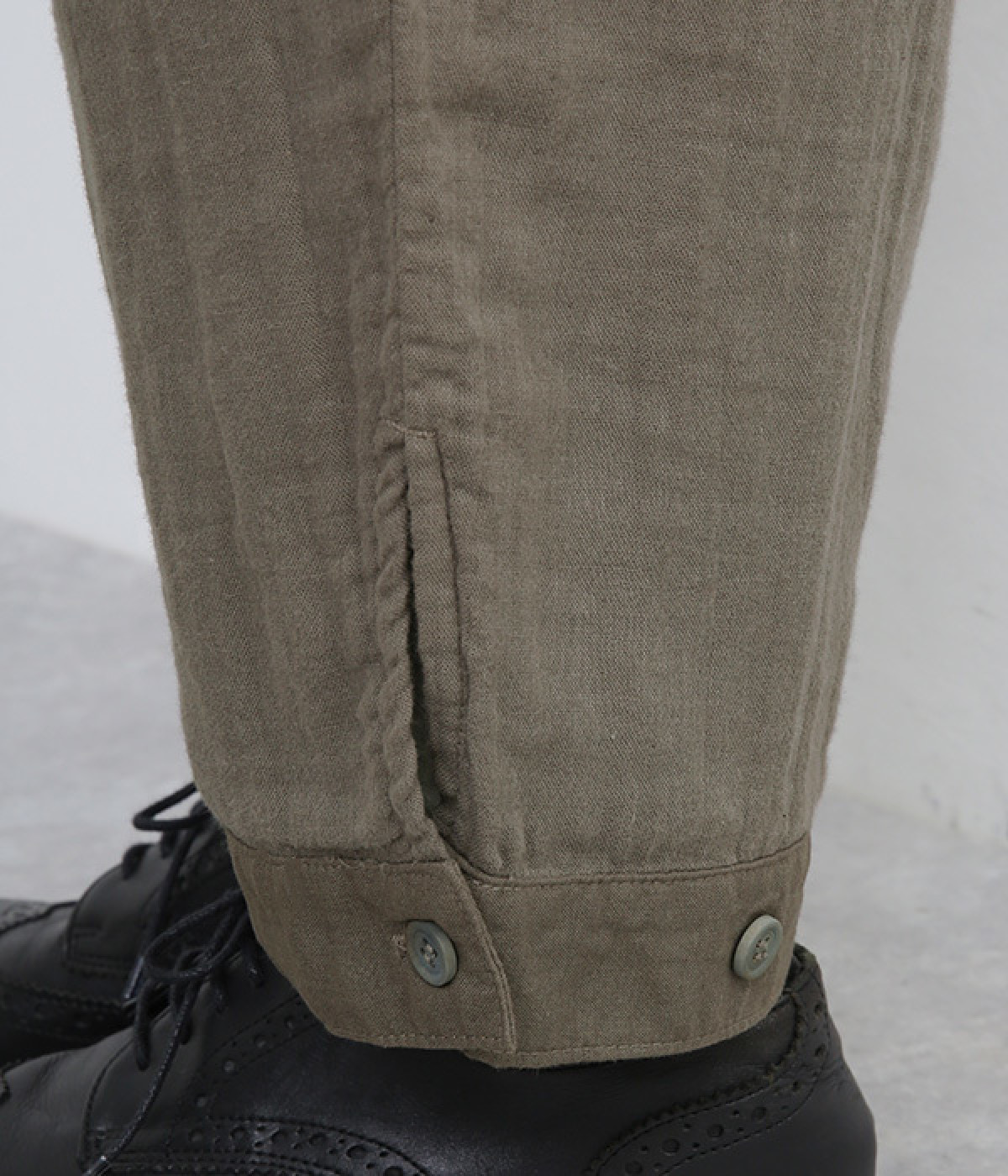 シルエットに変化をつけられる裾のカフスボタンつき