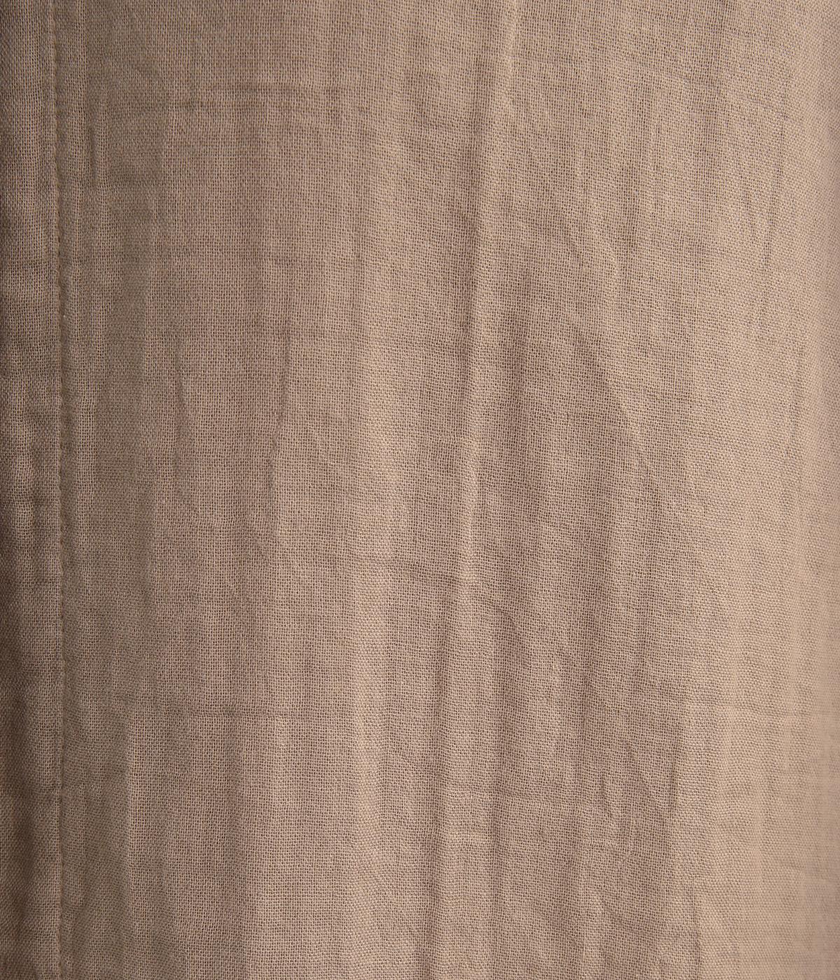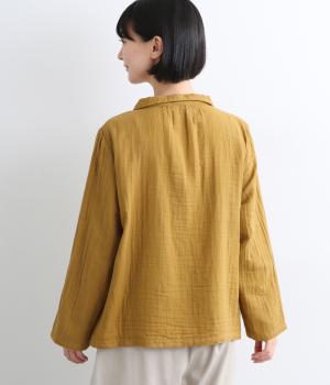 ふんわりとした肌あたりにやさしい表情が魅力的なコットンダブルガーゼで仕立てました。吸湿・速乾・通気性に優れた薄めの中厚手生地でロングシーズン活躍します。