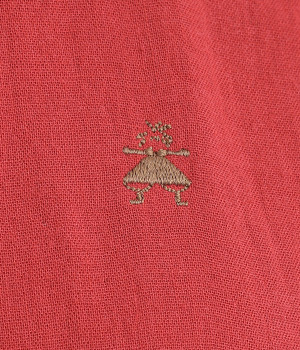 胸元にはさりげないワンポイント刺しゅうのあしらいを