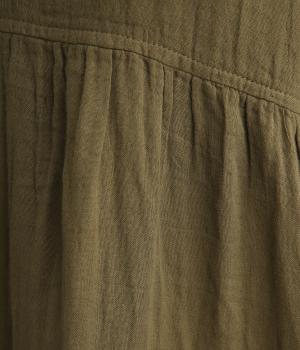 ふんわりとした肌あたりにやさしい表情が魅力的なコットンダブルガーゼで仕立てました。吸湿・速乾・通気性に優れた薄めの中厚手生地でロングシーズン活躍します。