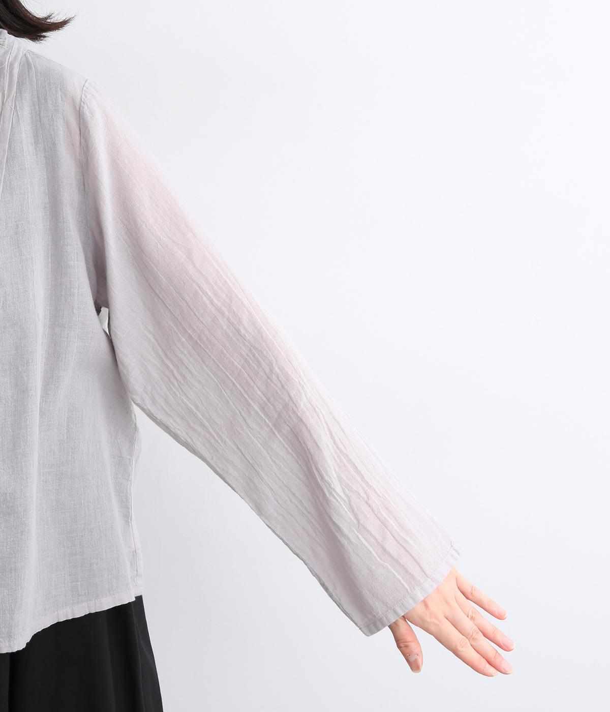 やわらかさとやさしい表情が魅力的なコットンガーゼを使用しました。シングル仕立てでより繊細さが際立ち、ほのかな透け感もコーディネートに奥行きを与えます。