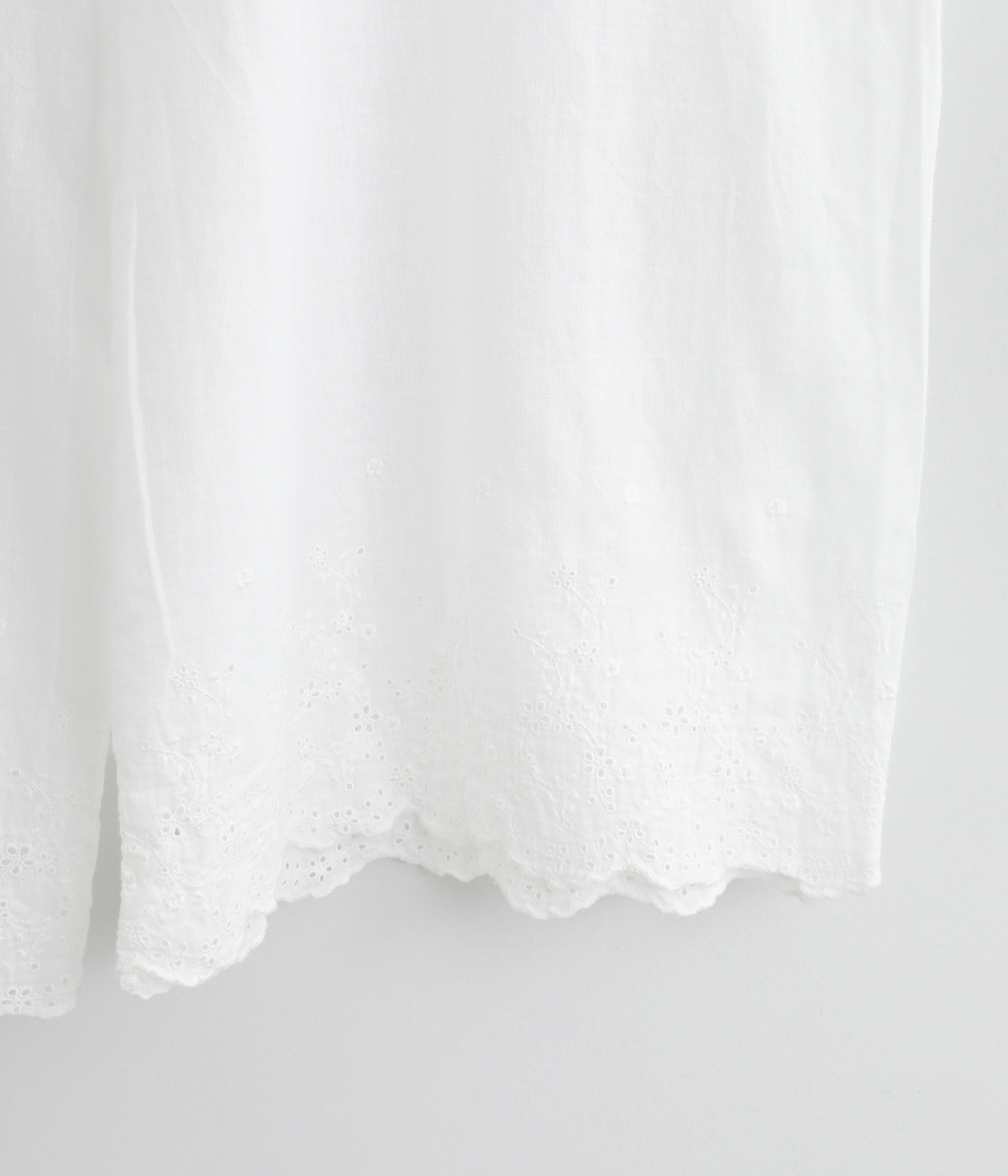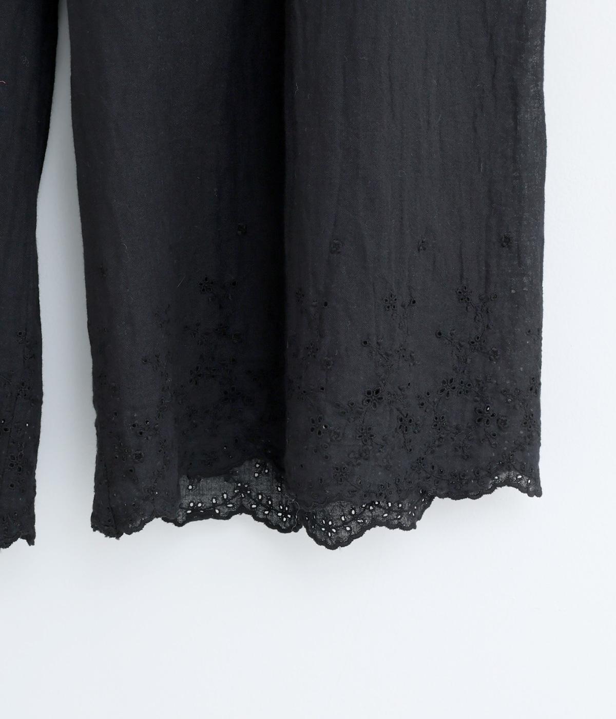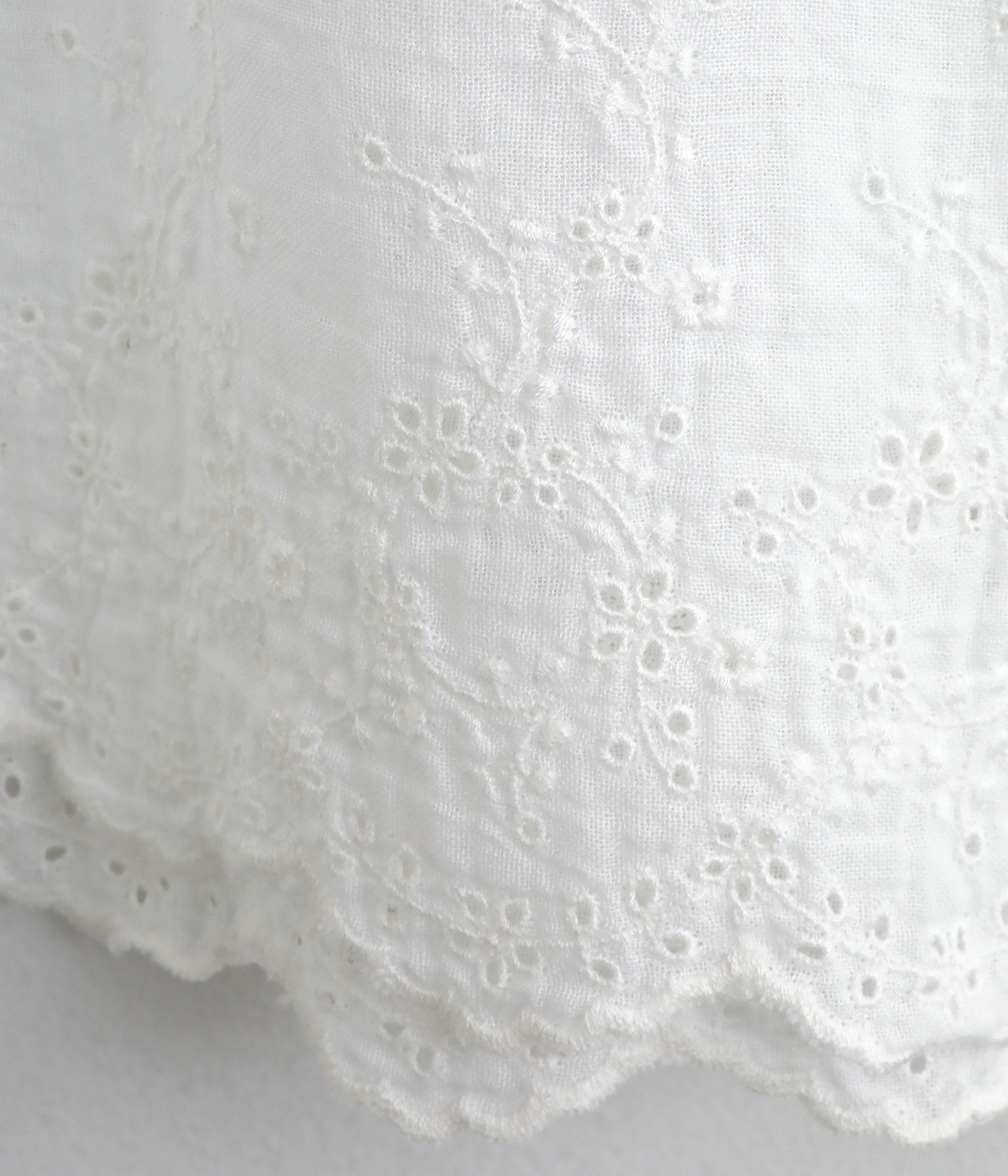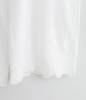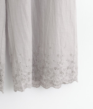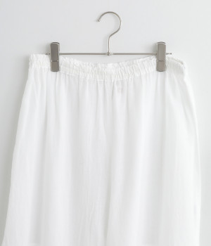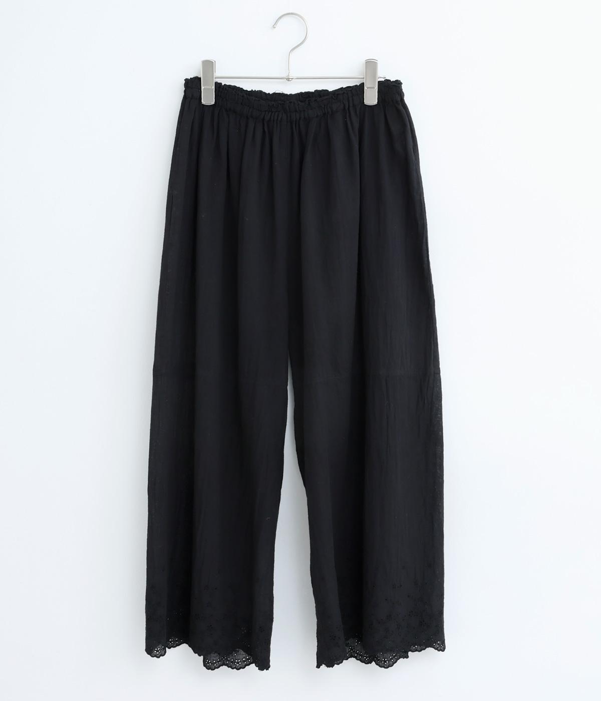 スカートやワンピースの下にはくペチパンツ。裾のスカラップとアイレット刺しゅうでデザイン性を持たせました。ゆとりのあるワイドシルエットと軽い素材感ではき心地は快適。ボトムの裾からちらりと見せてもおしゃれです。