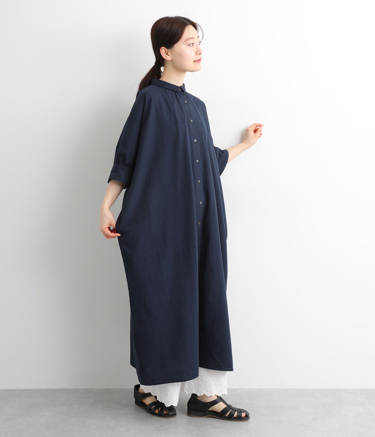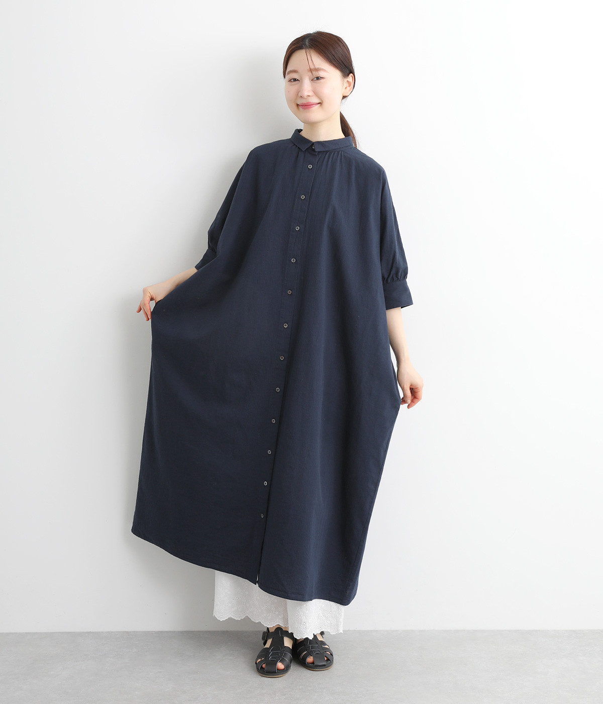 やわらかなコットン素材のシングルガーゼを使用。ナチュラルな風合いで、肌ざわりも良いです。少し透け感があり軽いので、動きやすく体の負担にもなりにくいです。