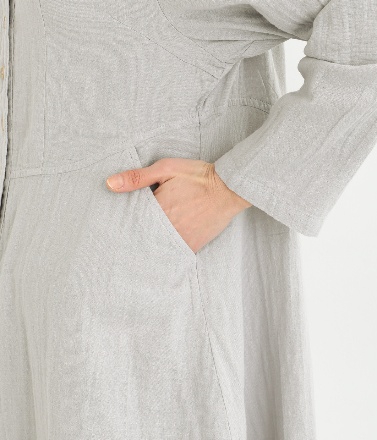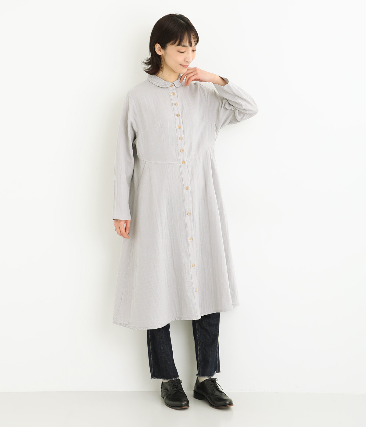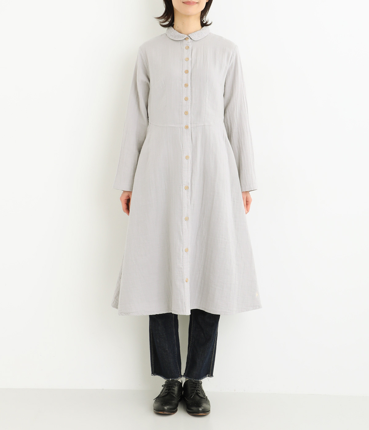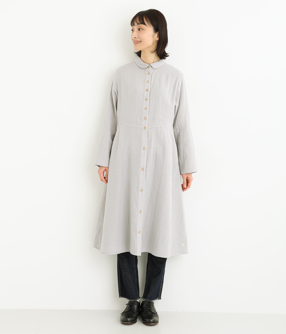 ふんわりと軽やかなコットンのダブルガーゼ生地を使用しました。吸水性、吸湿性に優れ、着るほどにやわらかくなじんでいくのも魅力です。