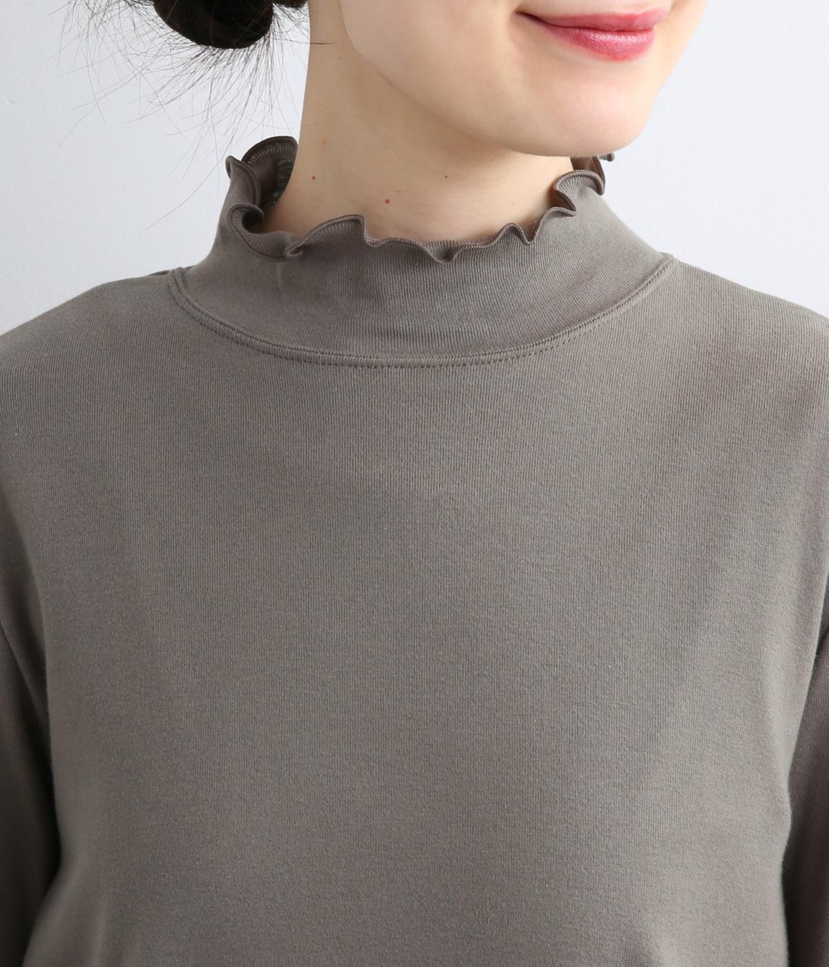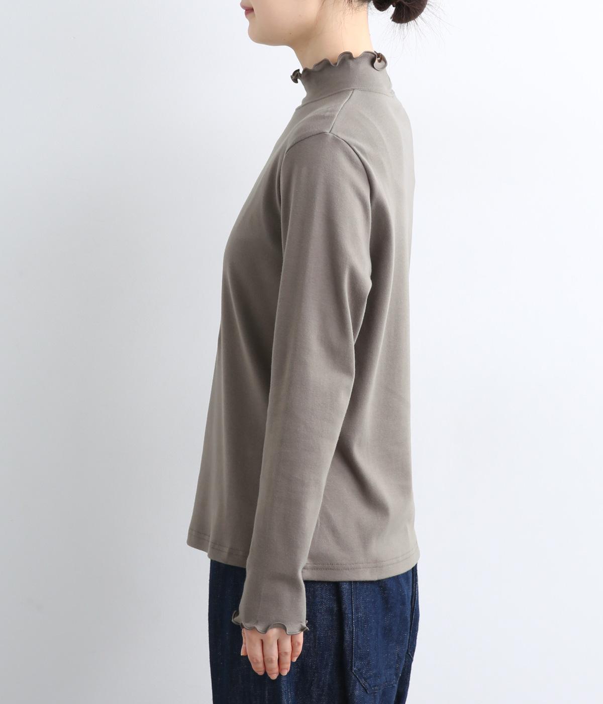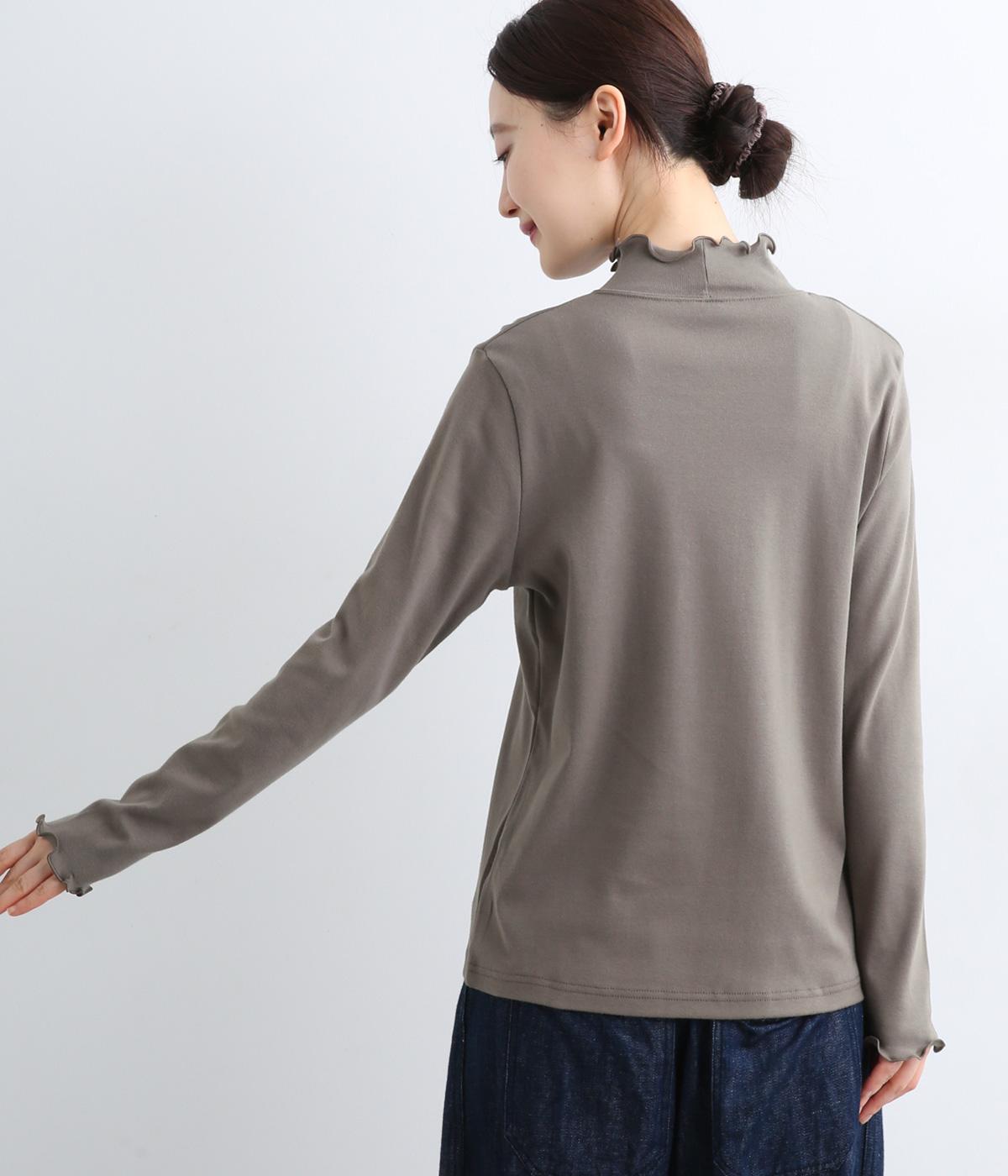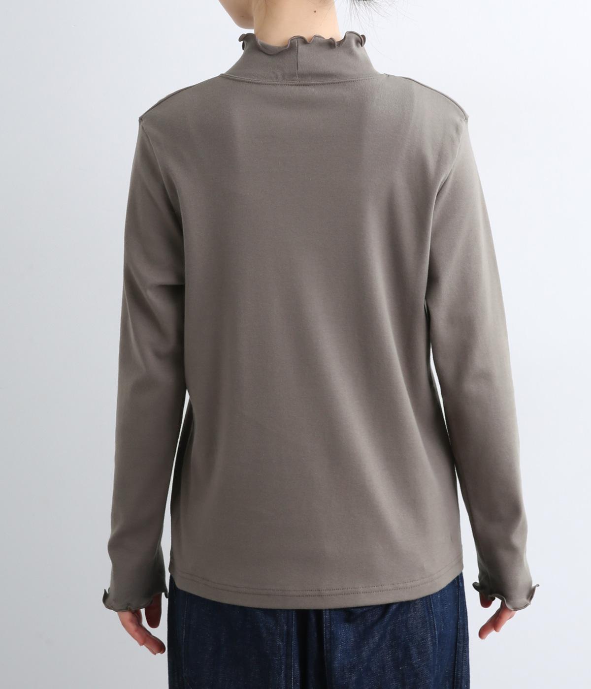 体のラインを拾いすぎない絶妙なサイズ感にこだわったプルオーバーです。ハイネックと袖口のメロウ始末がポイントで、ニットやスウェットからチラ見せしたインナー使いもおすすめ。メインにもサブにもなるので一枚持っていると重宝します。