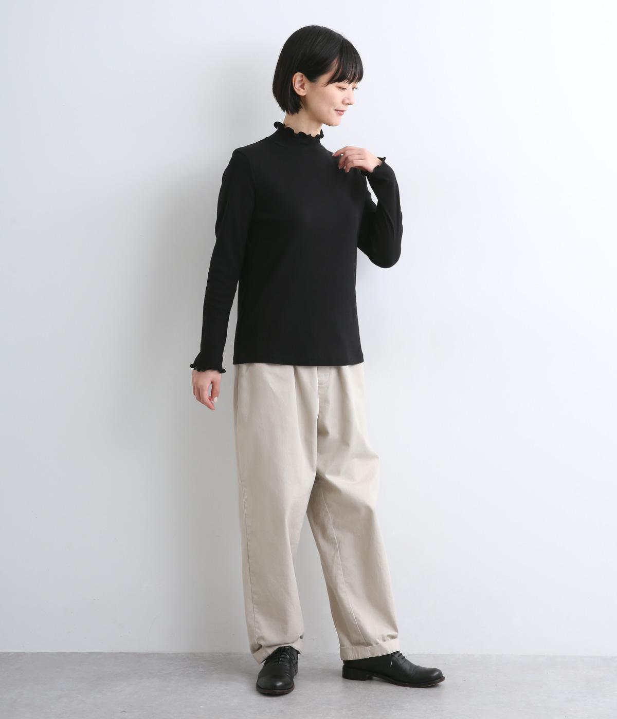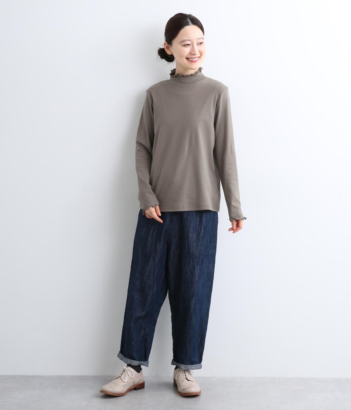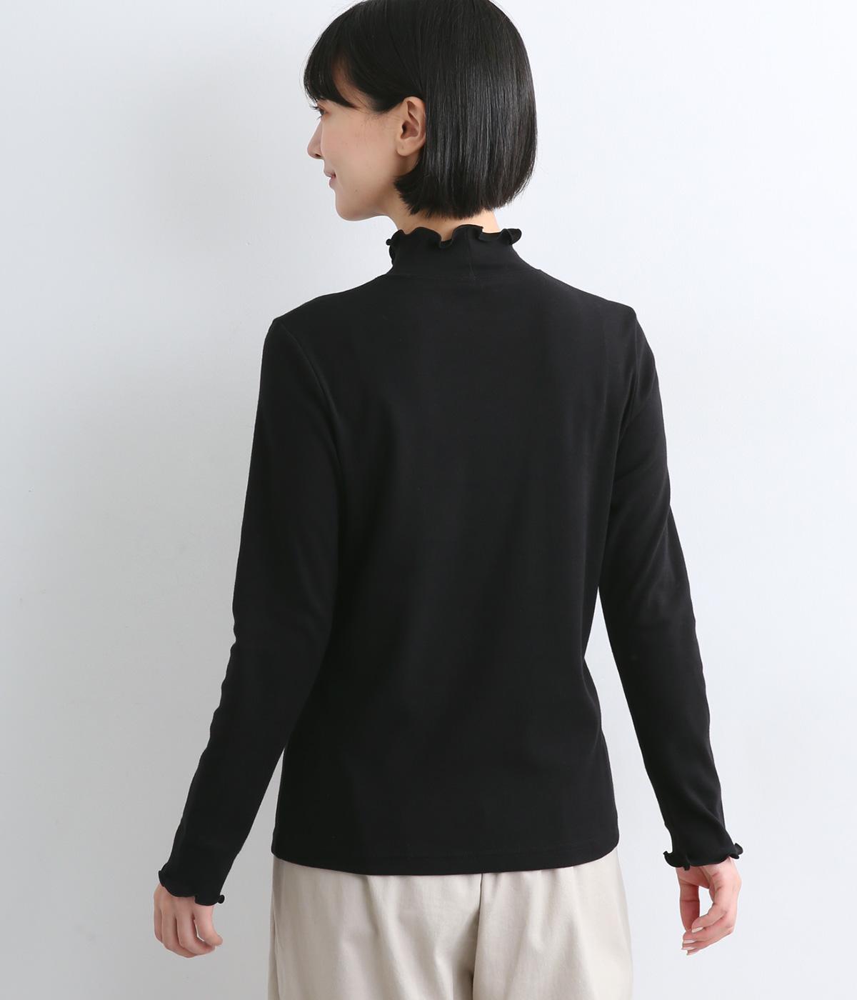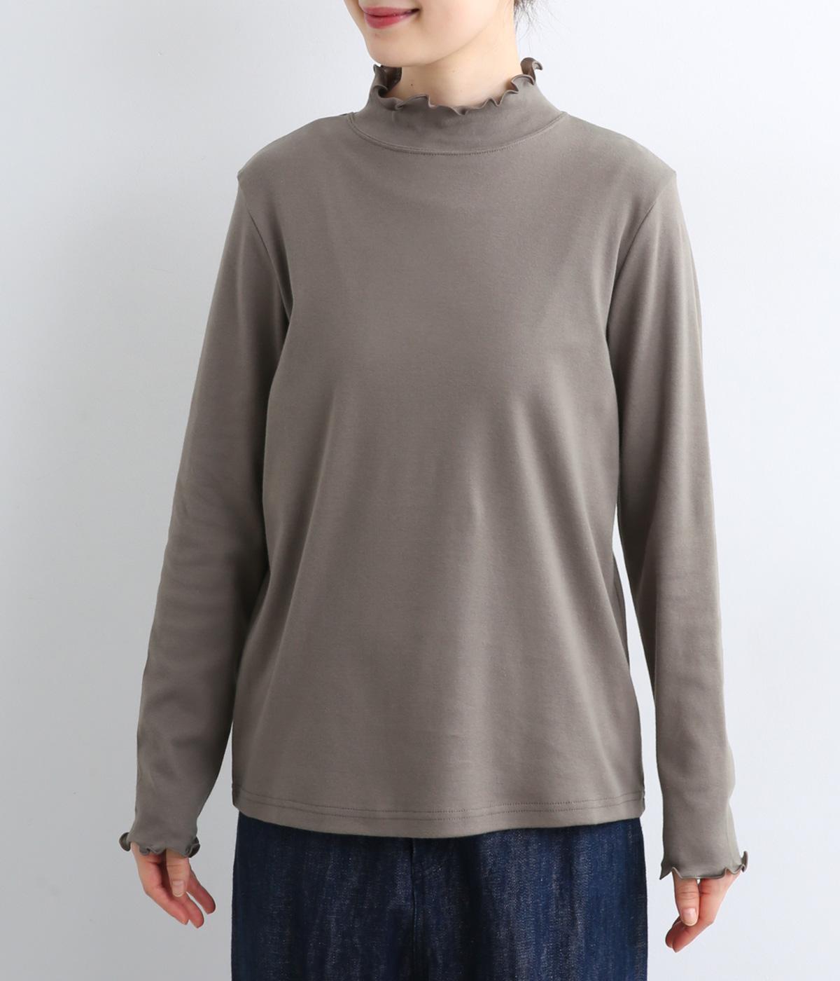 体のラインを拾いすぎない絶妙なサイズ感にこだわったプルオーバーです。ハイネックと袖口のメロウ始末がポイントで、ニットやスウェットからチラ見せしたインナー使いもおすすめ。メインにもサブにもなるので一枚持っていると重宝します。
