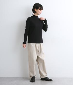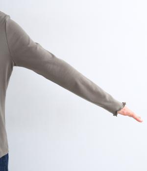 抜群の伸縮性で高いフィット感があり、吸湿・通気性に優れた着心地のいいコットンフライス生地で仕立てました。ほんのり起毛したあたたかみのある表情が特徴で、薄めの中厚手生地で使い勝手も◎。