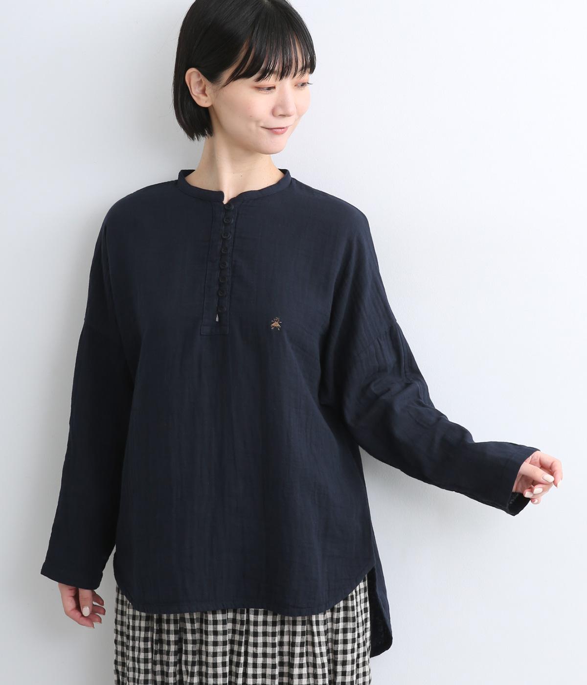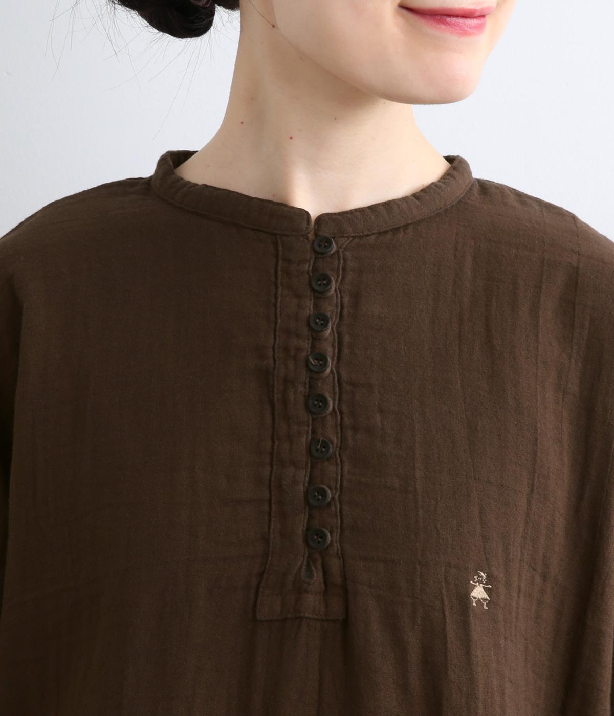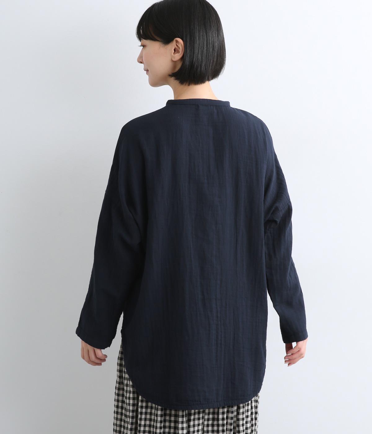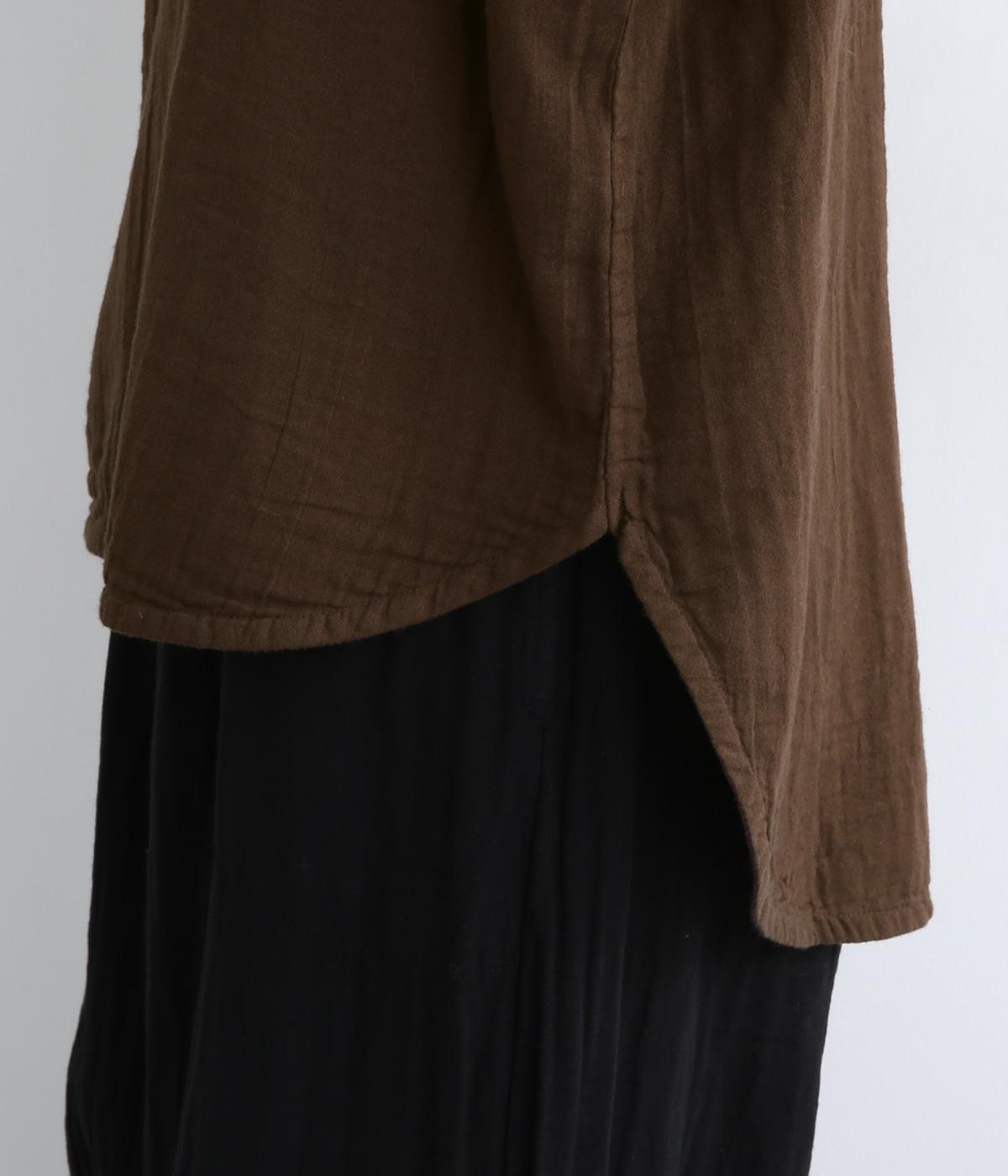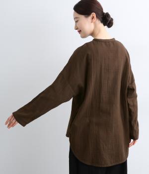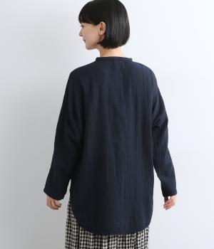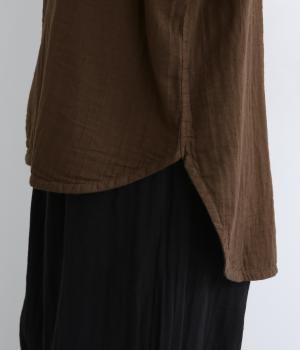 ふんわりとした肌あたりにやさしい表情が魅力的なコットンダブルガーゼで仕立てました。吸湿・速乾・通気性に優れた薄めの中厚手生地でロングシーズン活躍します。