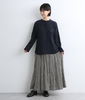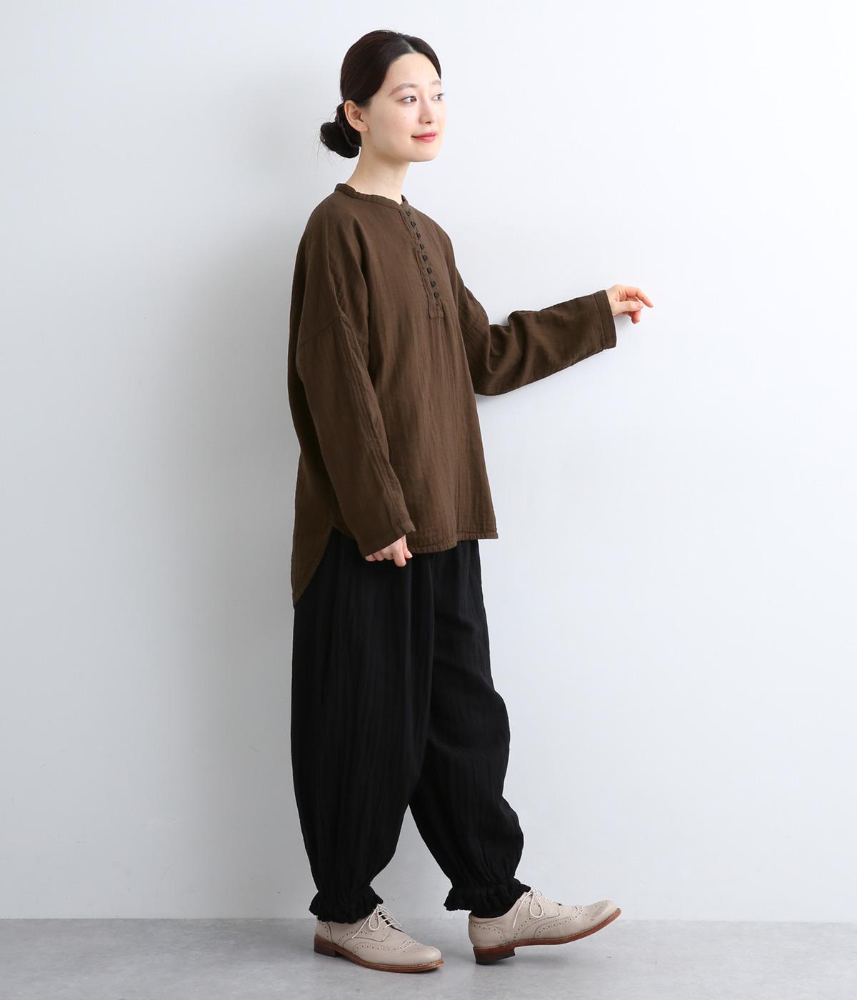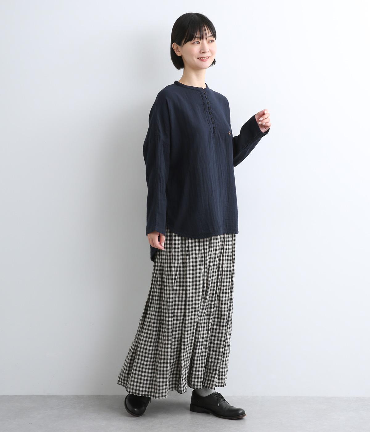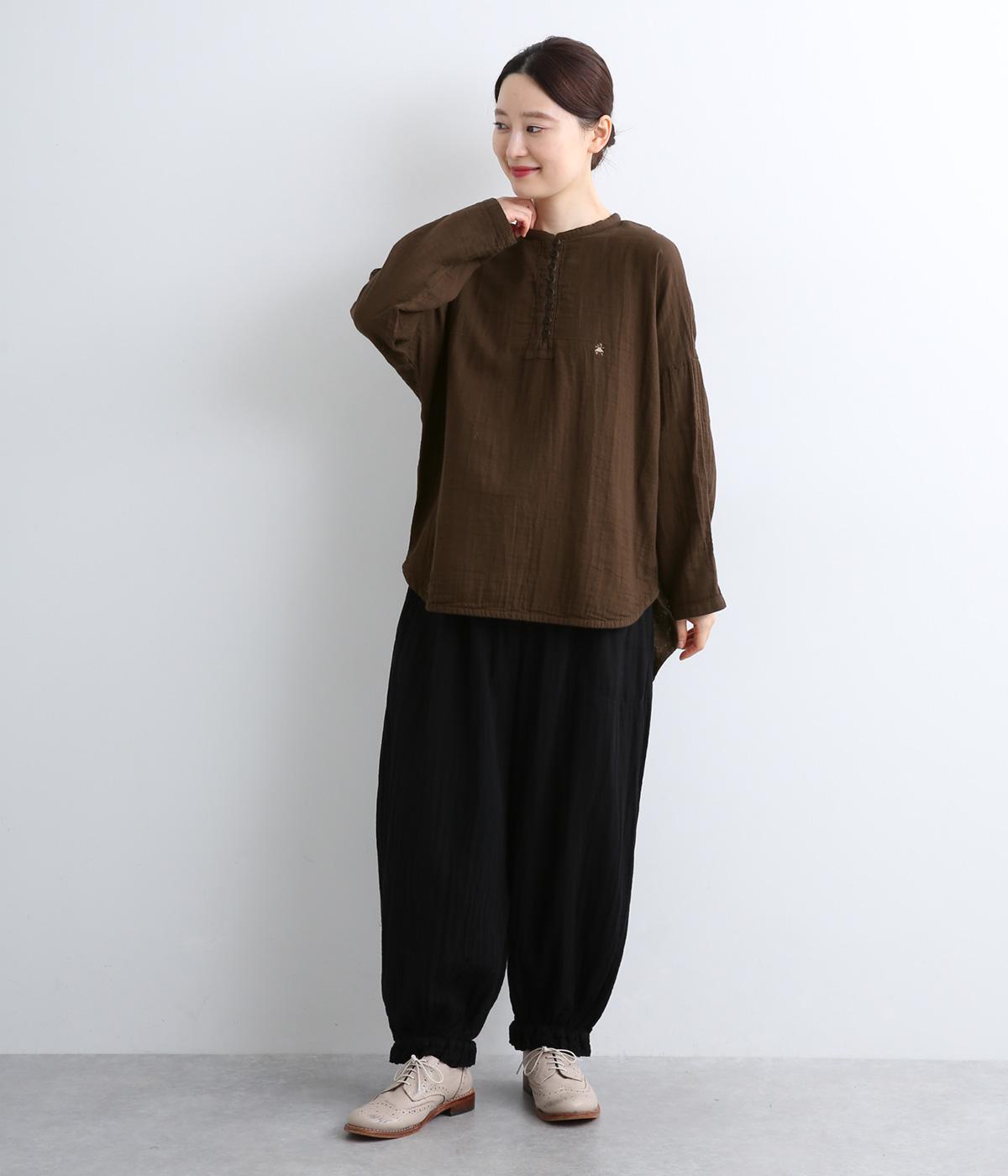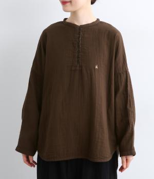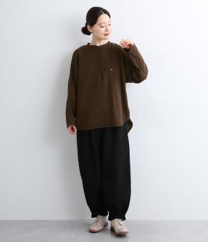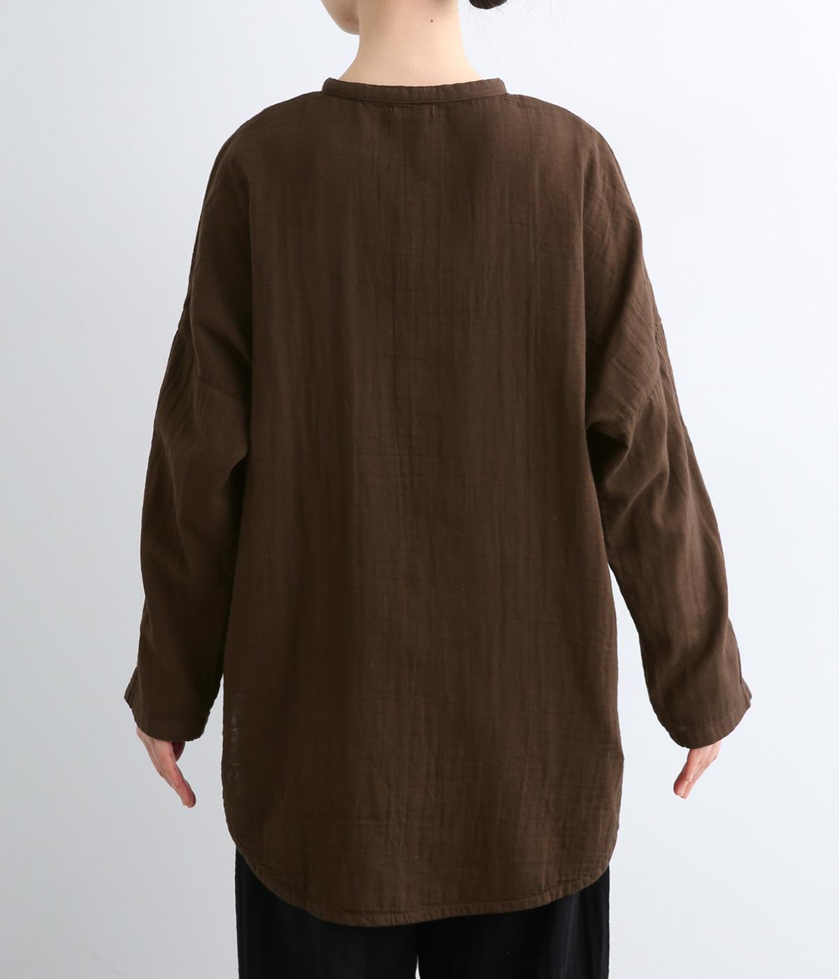 ふんわりとした肌あたりにやさしい表情が魅力的なコットンダブルガーゼで仕立てました。吸湿・速乾・通気性に優れた薄めの中厚手生地でロングシーズン活躍します。