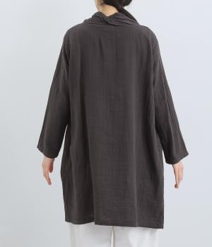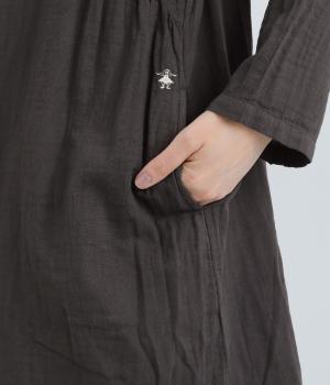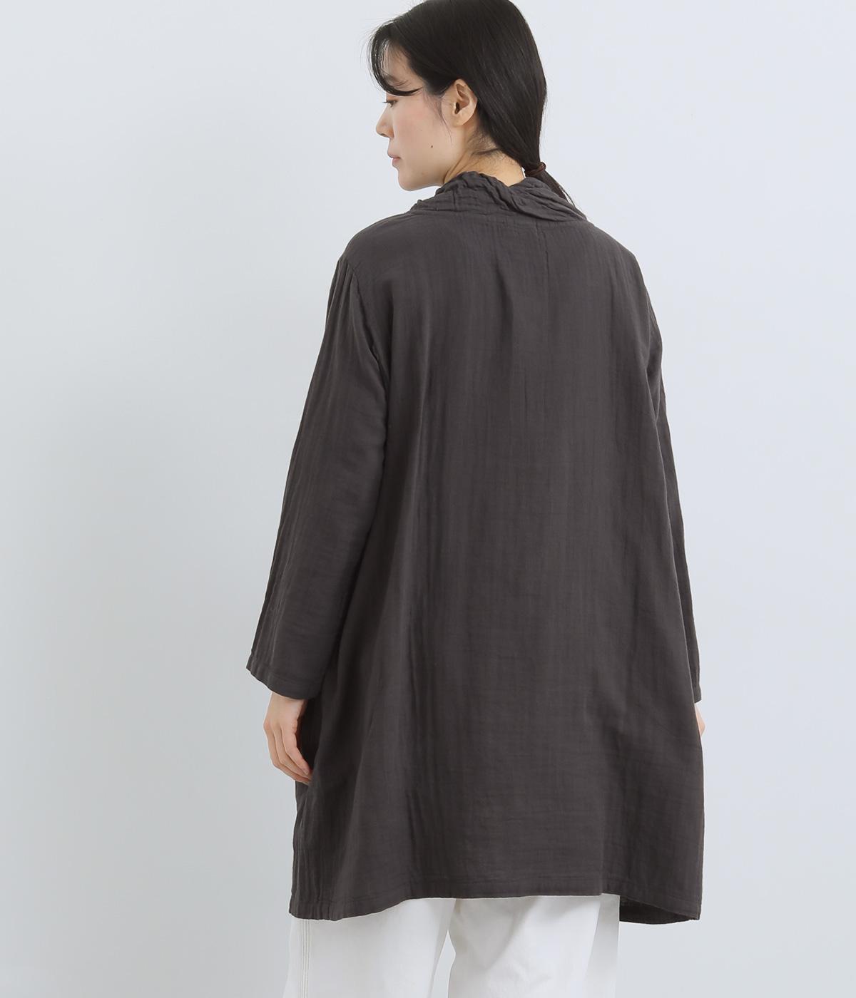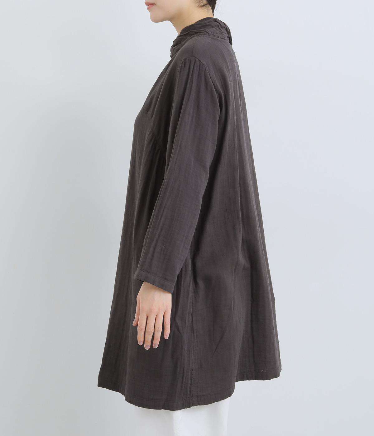 ふんわりとした肌あたりにやさしい表情が魅力的なコットンガーゼを使用。ダブルで仕立てることで透け感をやわらげ、ロングシーズン快適に着まわせます。