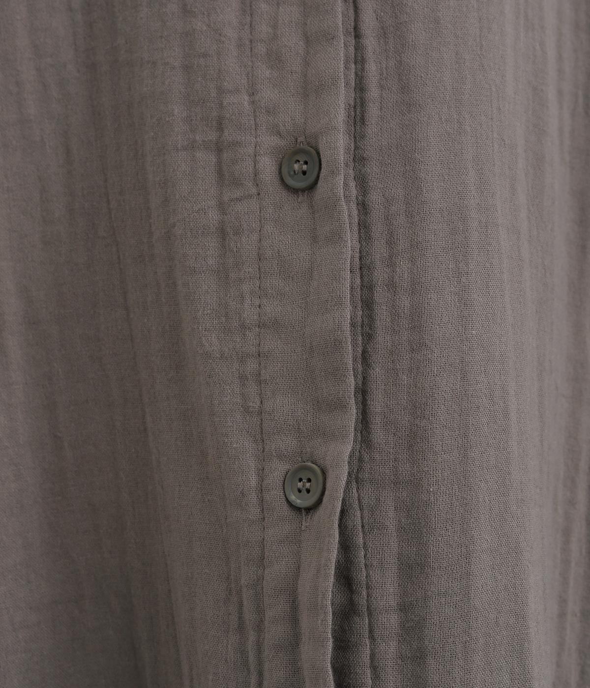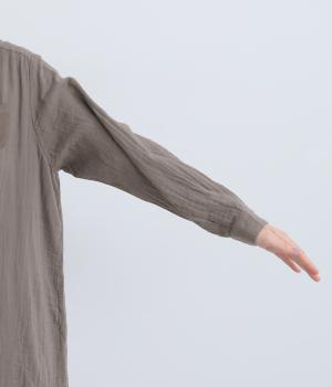 ふんわりとした肌あたりにやさしい表情が魅力的なコットンガーゼを使用。ダブルで仕立てることで透け感をやわらげ、ロングシーズン快適に着まわせます。