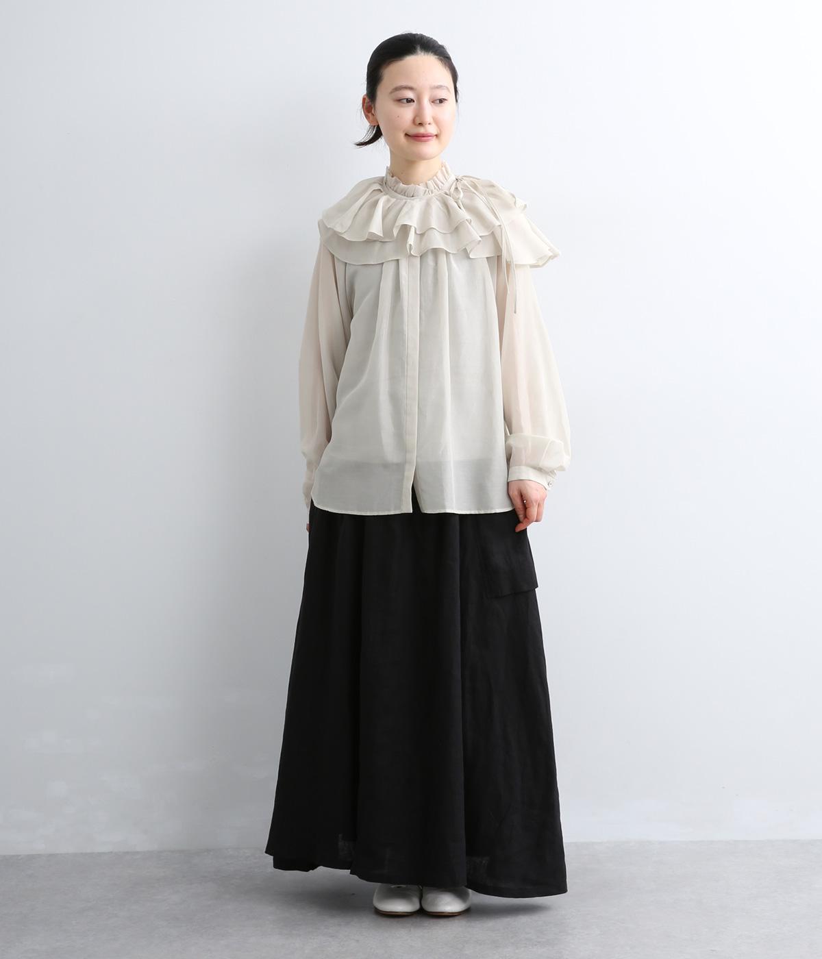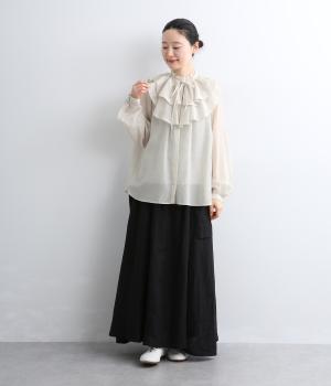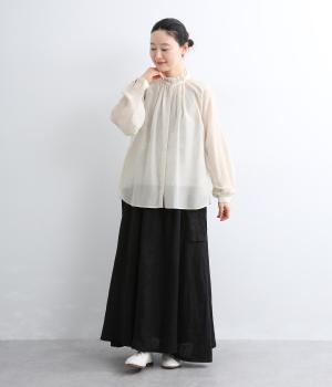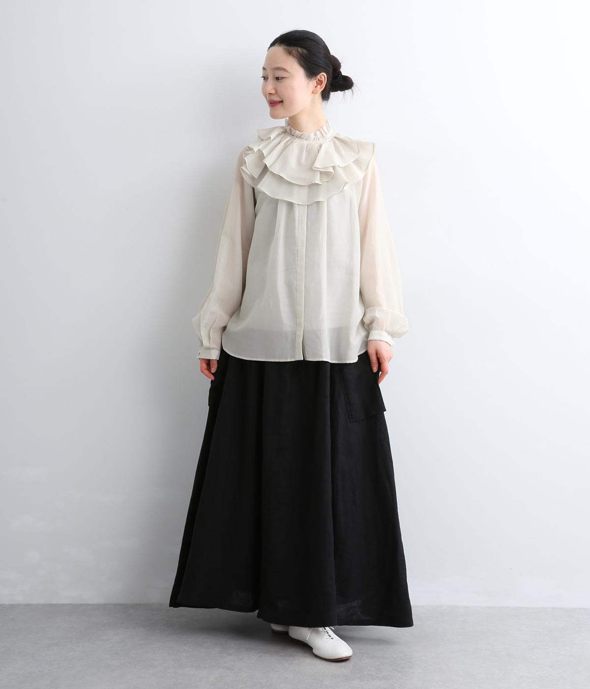フレンチリネン平織りTCスレキサイドポケットリネンスカート(ブラック)