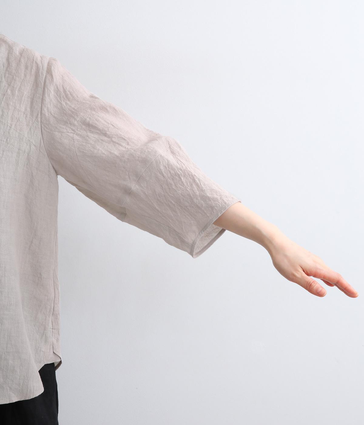 ヨーロッパ産の上質なリネンを使用した、LOISIRの定番素材「グランジリネン」です。小ロット染めや天日干しを重ねることで、洗いざらしのようなやわらかな風合いに仕上げています。さらりとした肌ざわりとナチュラルな表情が魅力で、着るほどにやわらかくなじんでいく変化もたのしめます。