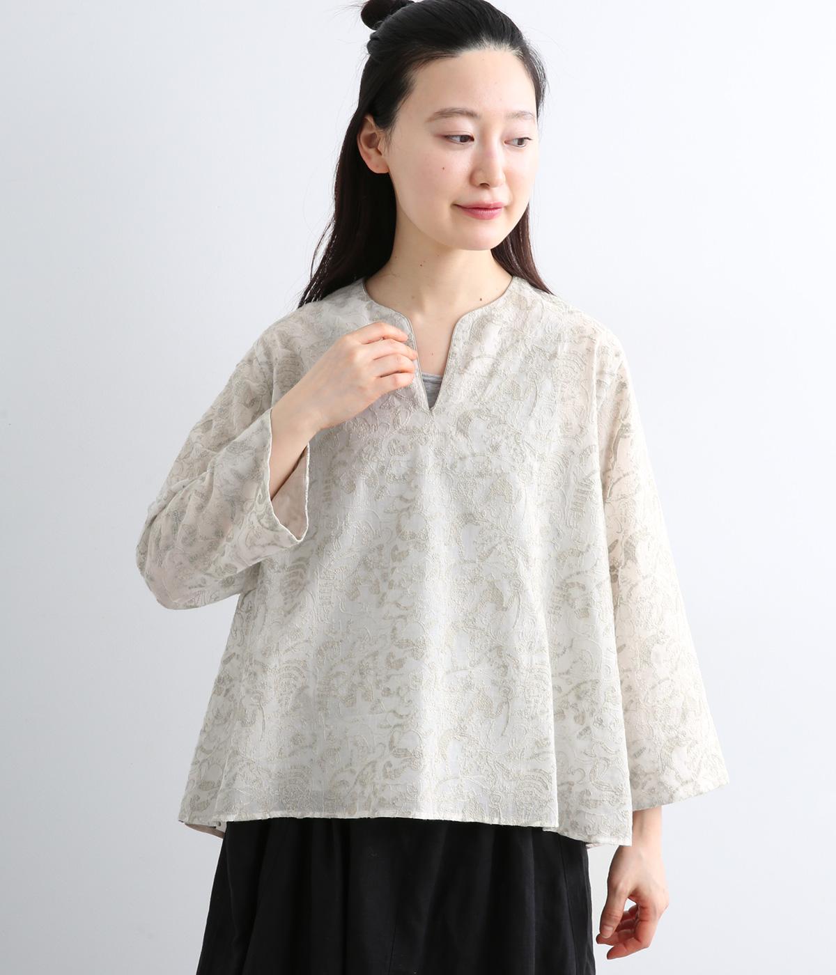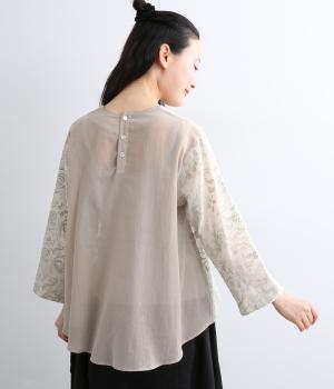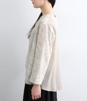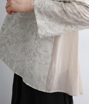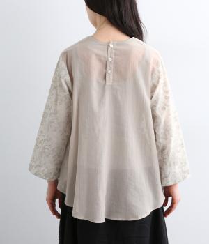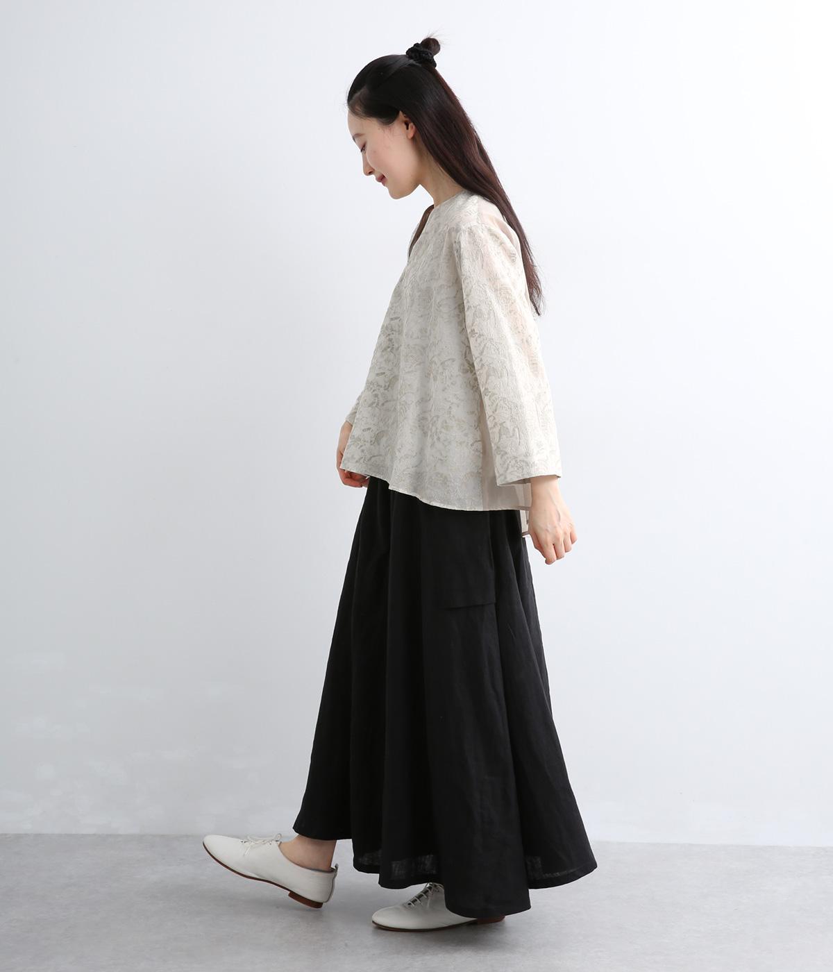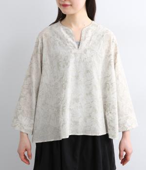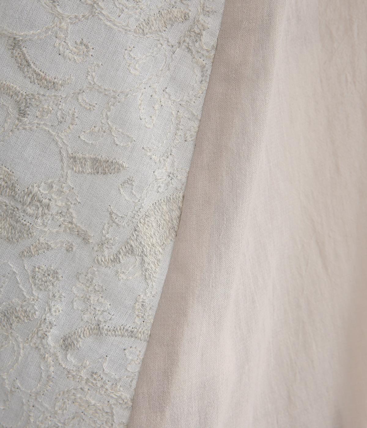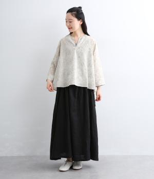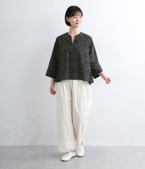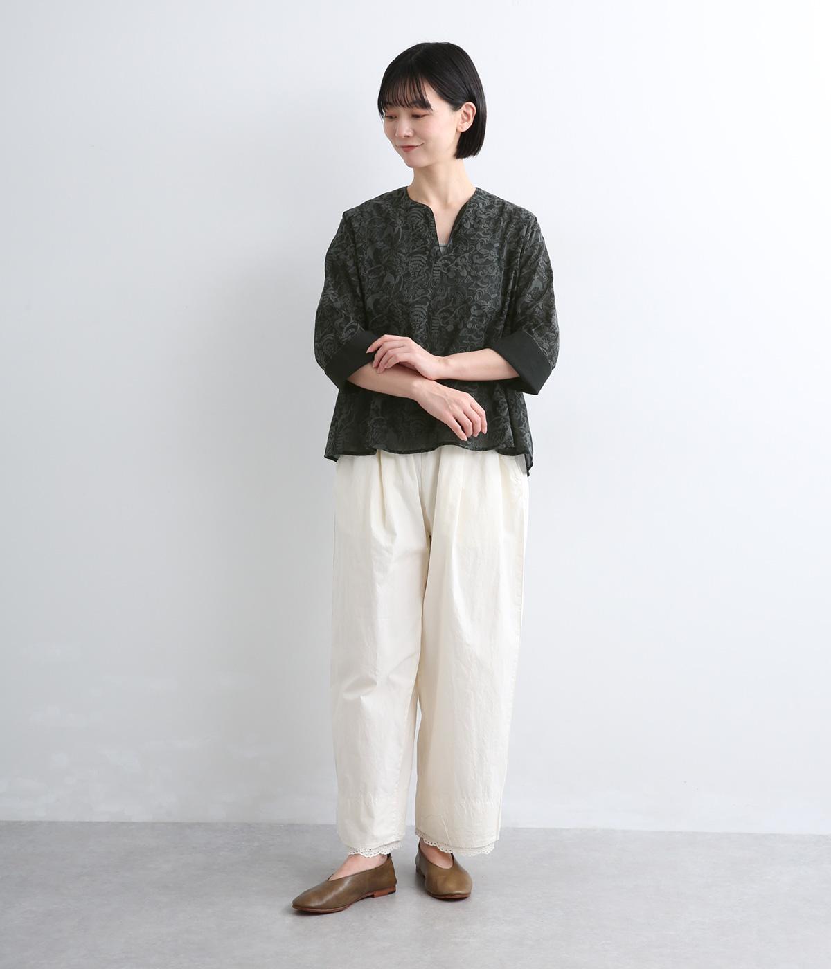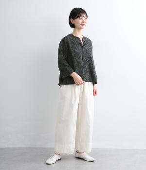 軽やかでやわらかな80番手のコットンボイルを使用しました。ほんのりとした透け感と、なめらかなとろみが重なり上品な印象に。さらりとした肌ざわりで通気性にも優れ、心地よく着られる上質な生地感です。