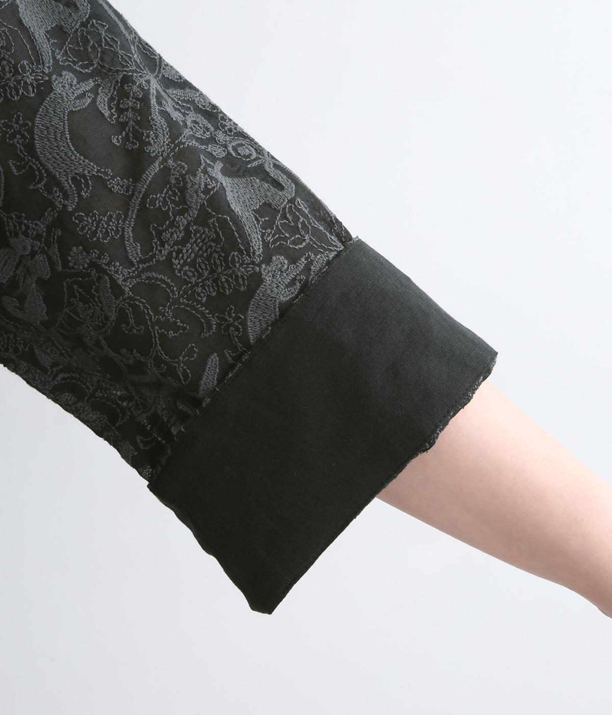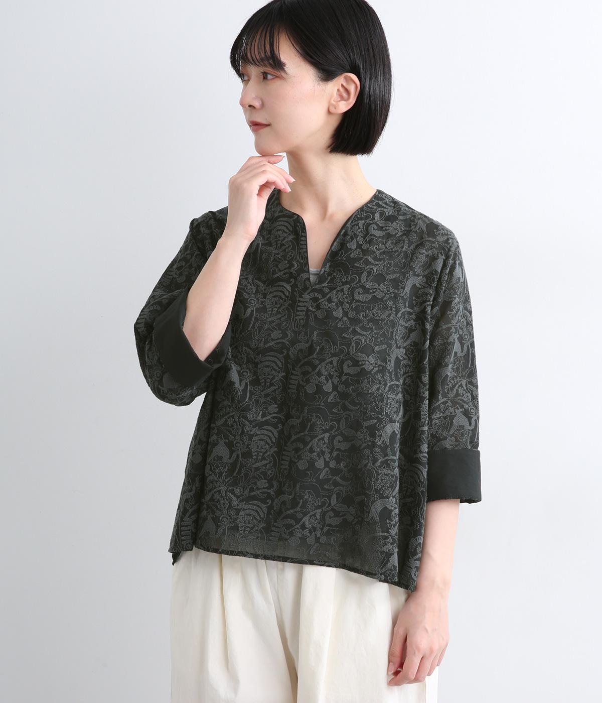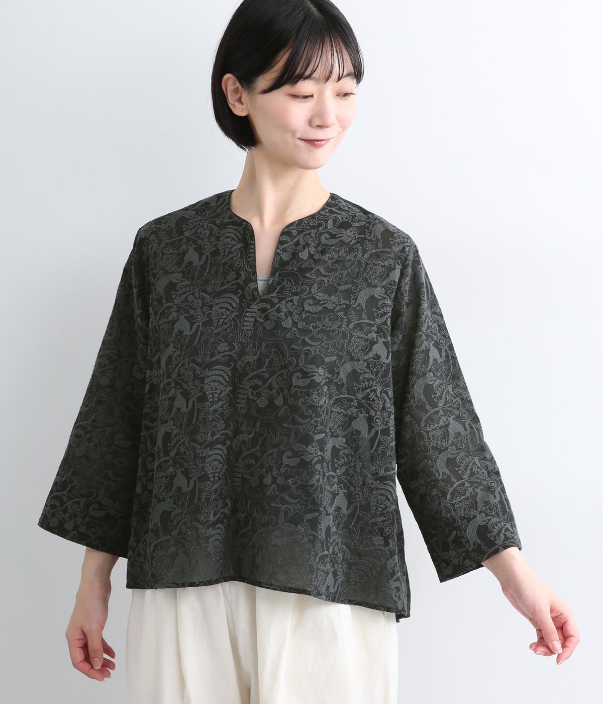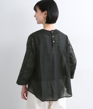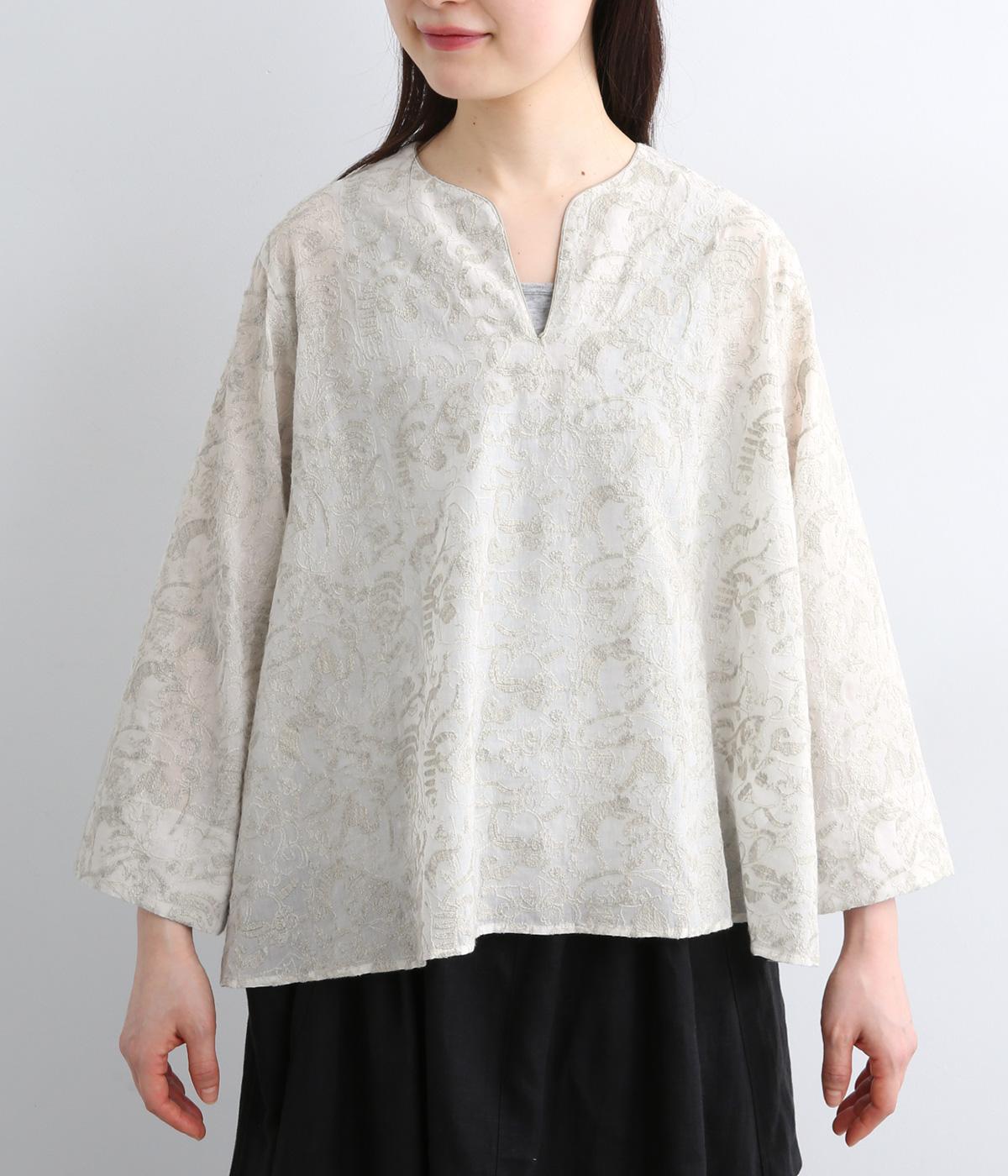 軽やかでやわらかな80番手のコットンボイルを使用しました。ほんのりとした透け感と、なめらかなとろみが重なり上品な印象に。さらりとした肌ざわりで通気性にも優れ、心地よく着られる上質な生地感です。