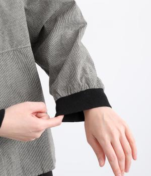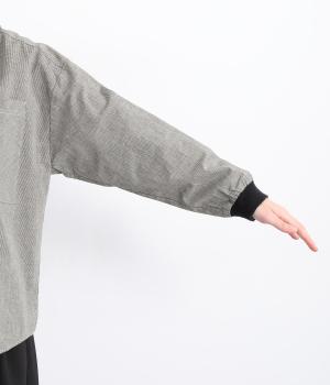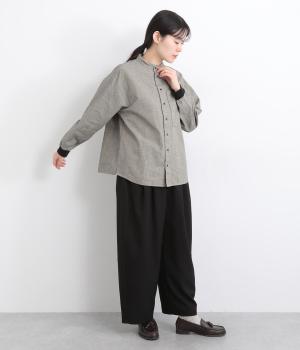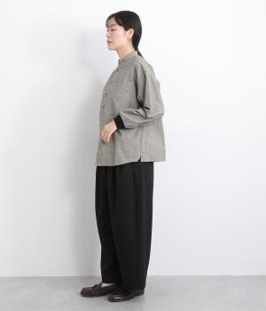 ほどよいハリがきちんと見えするコットンリネン生地を使用。袖口には伸縮性のあるコットンリブを合わせました。ネップのある自然な風合いが魅力の素材感です。