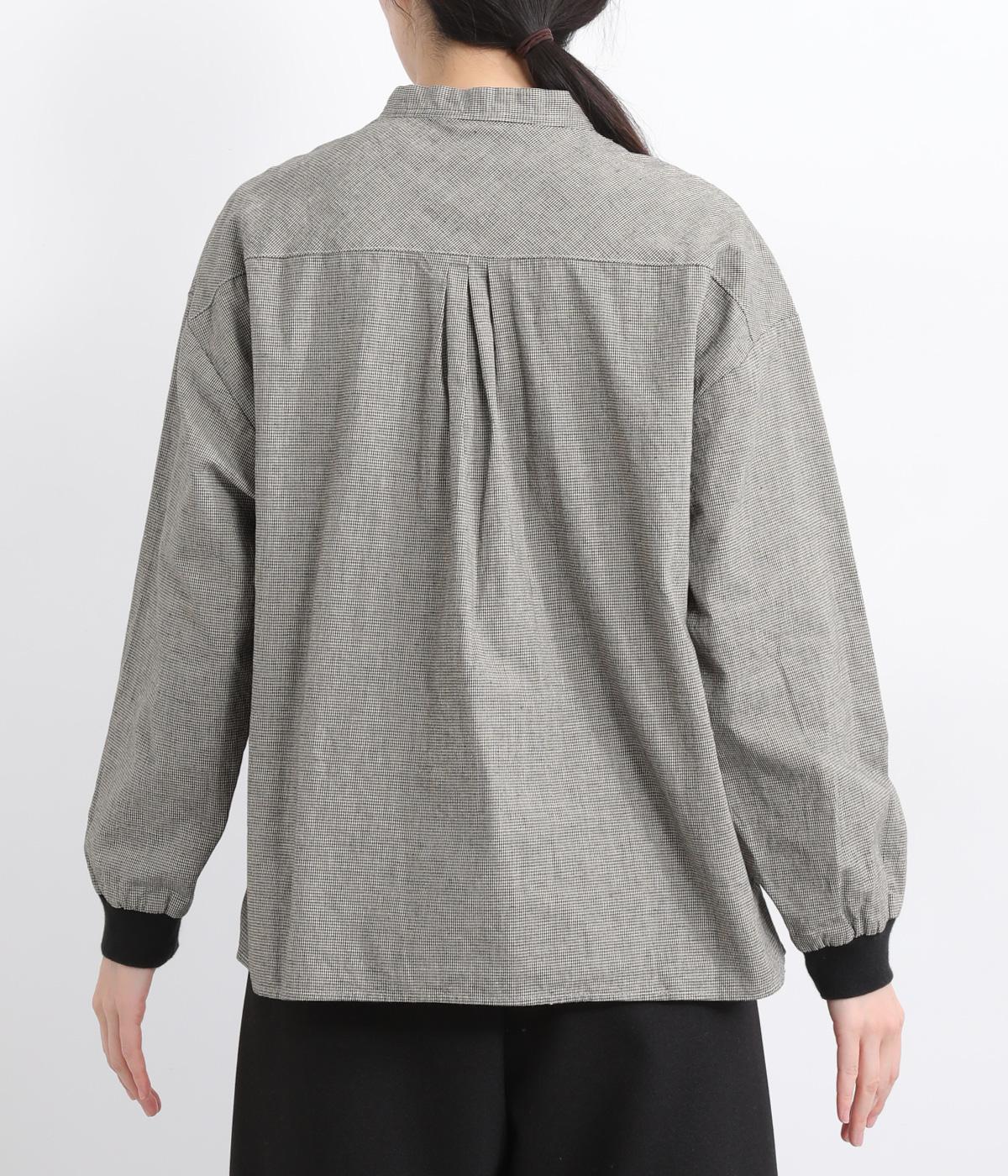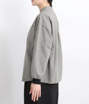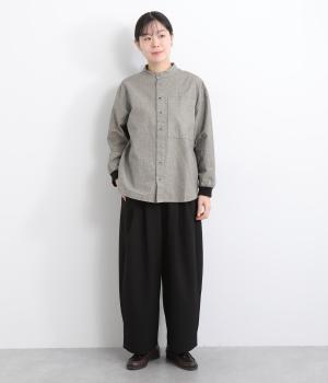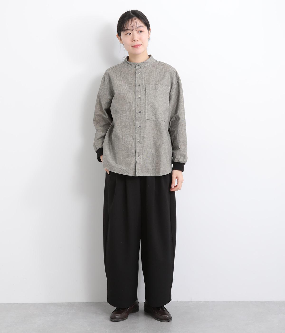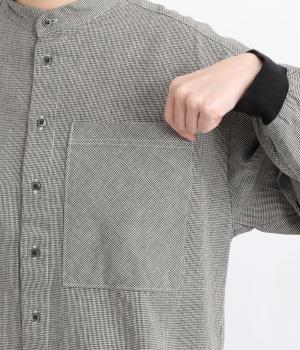 大きなポケットが印象的なバンドカラーシャツ。袖口のリブがカジュアルさを演出しつつ実用性も備えました。ほどよい丈感でパンツスタイルにもスカートにも合わせやすく、大人カジュアルなスタイリングが楽しめる一枚です。