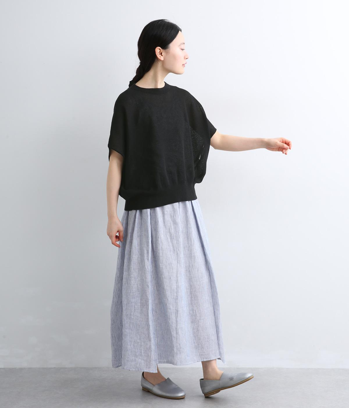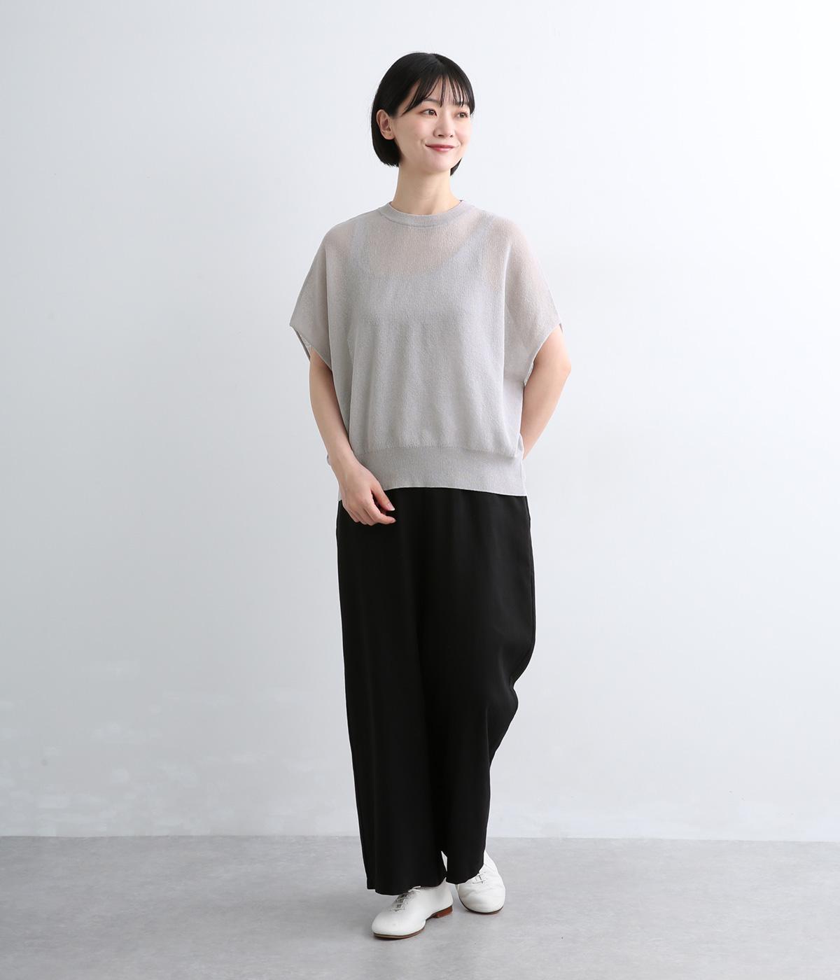 Tシャツのようにさらりと着られる、ニット素材のプルオーバーです。ゆったりとした身頃で肌離れがよく、軽やかな着心地に仕上げました。ドルマン型のシルエットに裾のリブでメリハリを添え、ボリュームのあるボトムスとも好相性です。