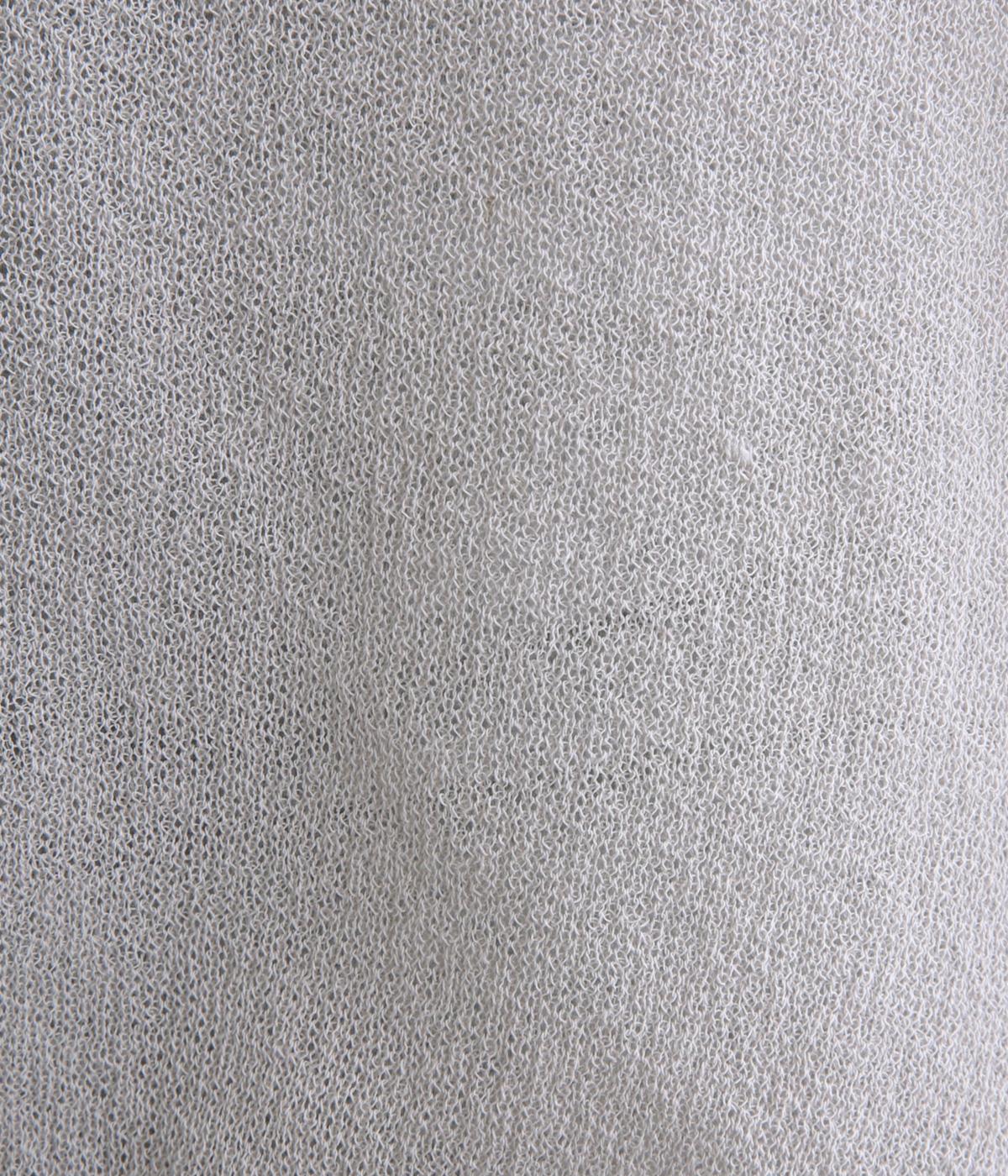 天然素材のコットンリネンにポリエステルをかけ合わせて編んだ、ダブルジャカード素材です。裏に糸をわたさない編み方により、すっきりとした表面感とほどよいハリを実現。軽やかで、汗ばむ季節にも心地よく着られます。