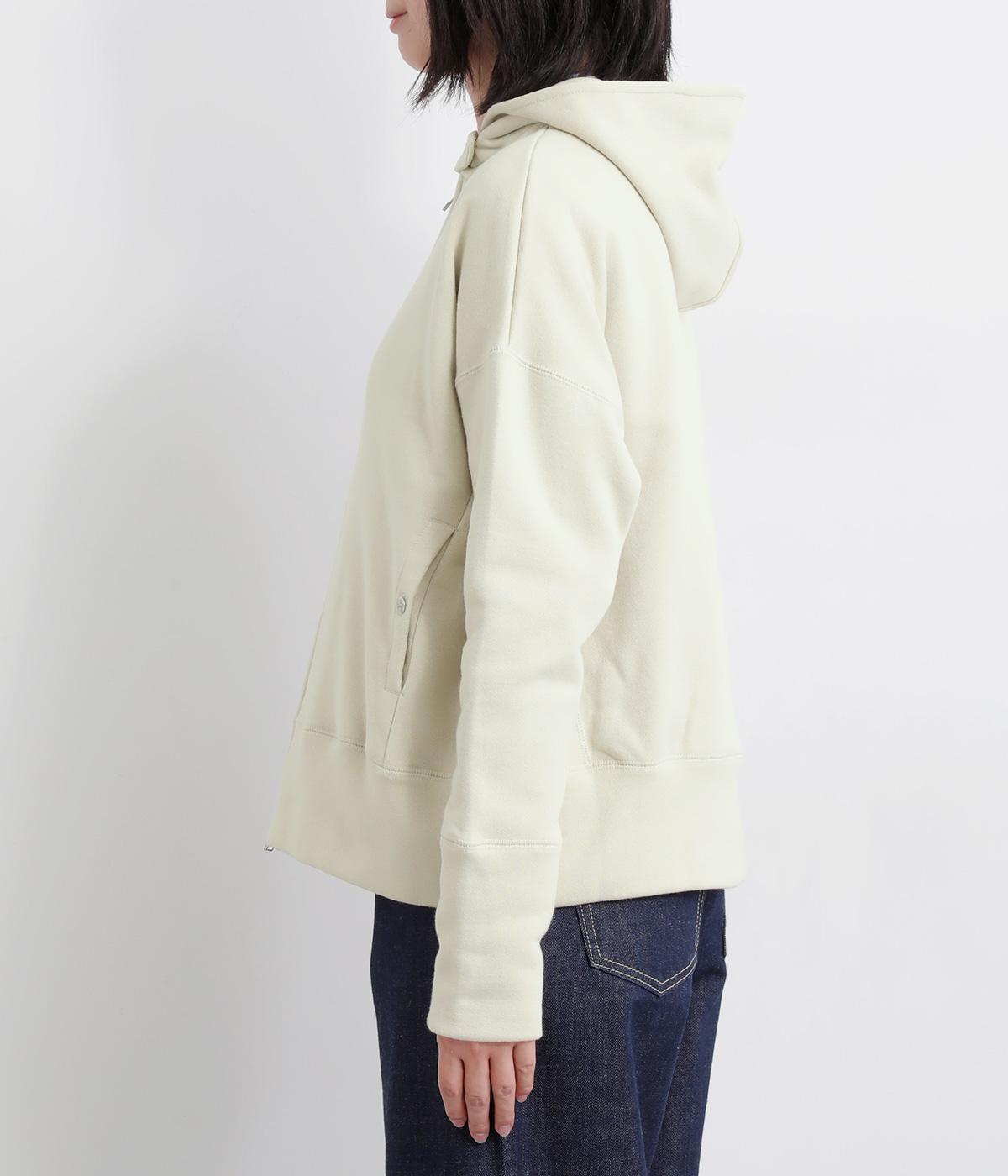 希少な旧式編み機「アズマ編み機」を使用した綿の裏毛生地を採用。ふっくらとやわらかな風合いが特徴的で、生地感はしっかりしていてカジュアルに着こなせます。