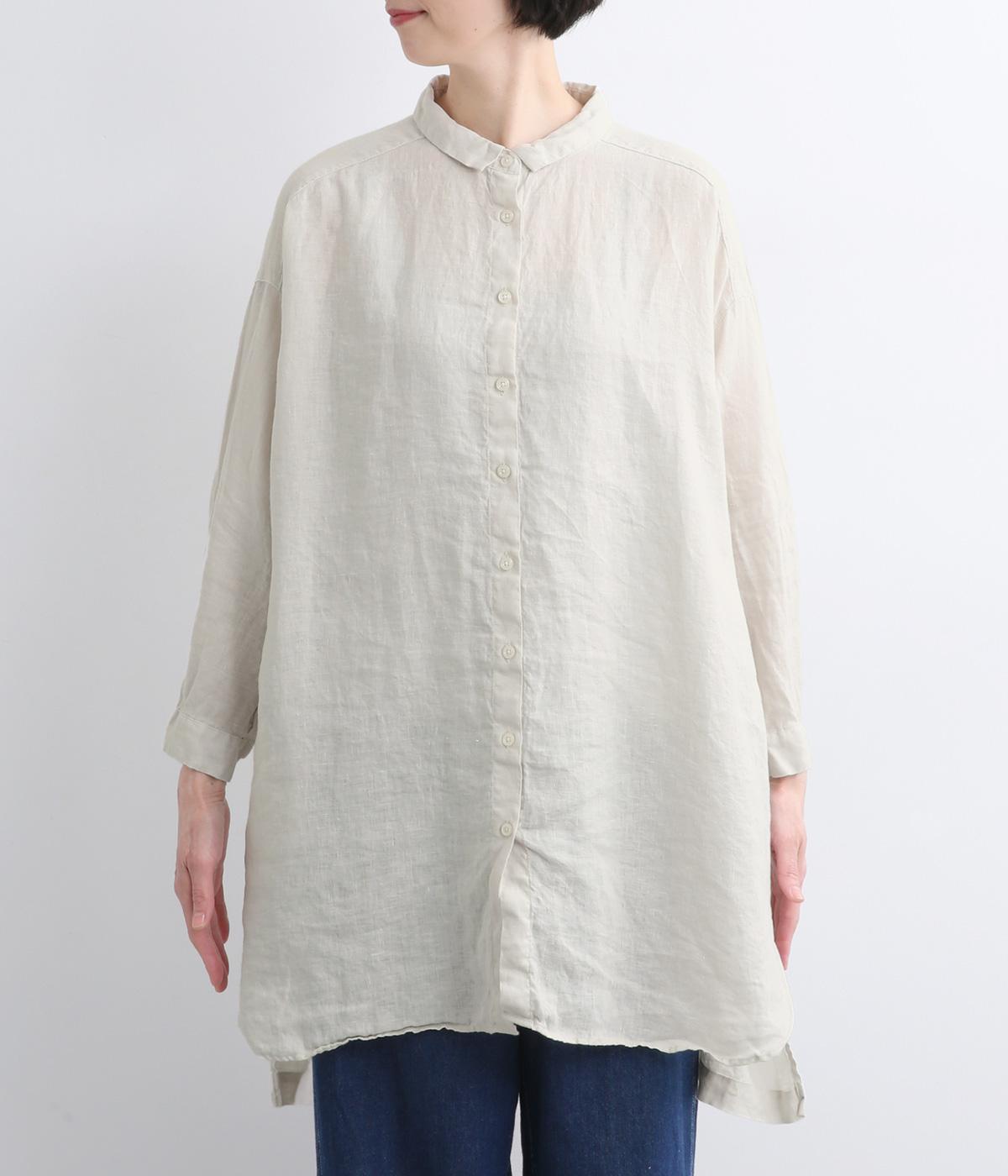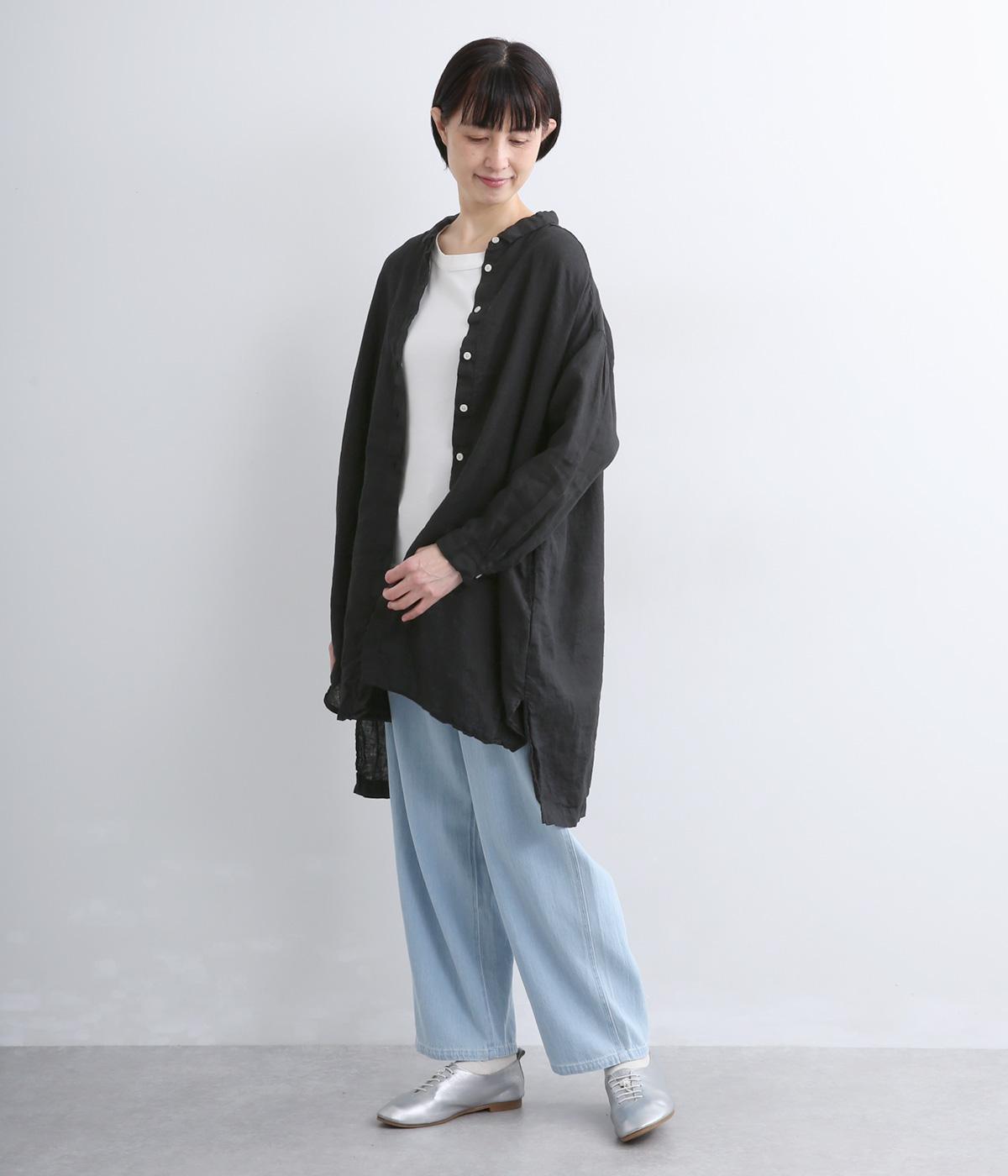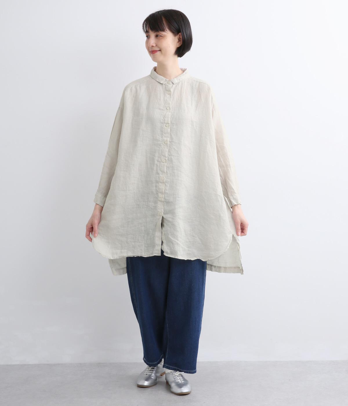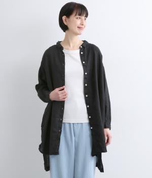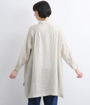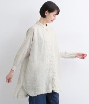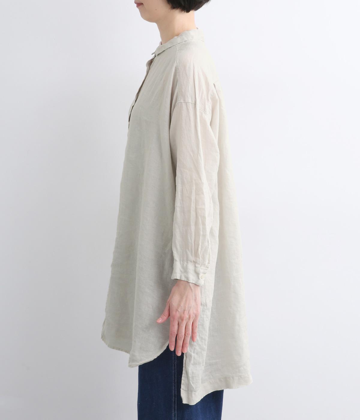 生地の風合いをいかしたシンプルなチュニックです。小さめの襟がさりげないきちんと感をプラス。腰まわりをカバーする着丈でリラックスした着心地に仕上げました。緩やかに曲線を描くヘムラインが優雅な印象を添えます。
